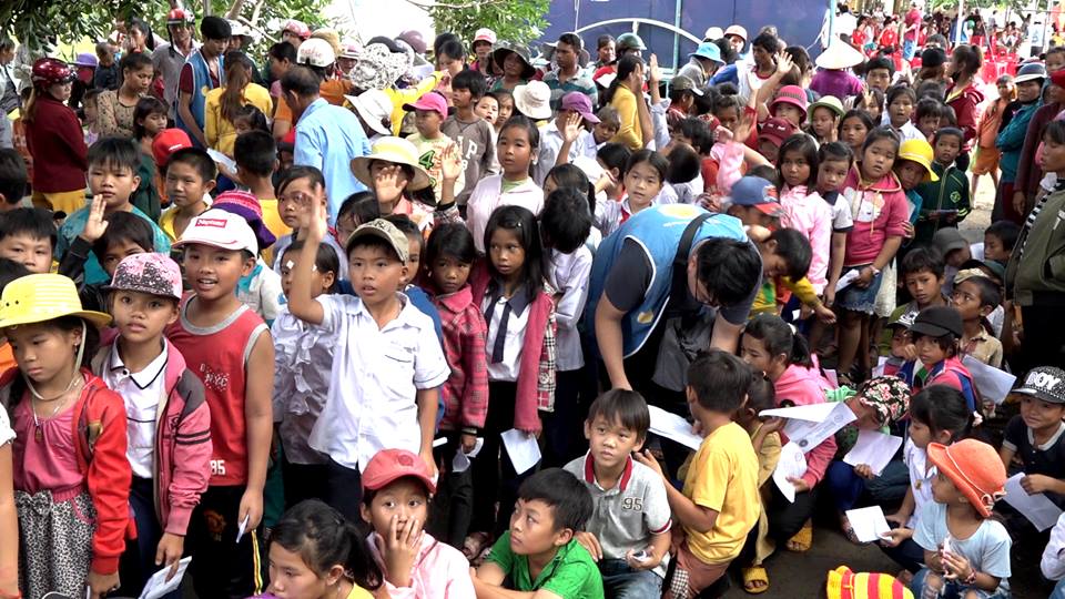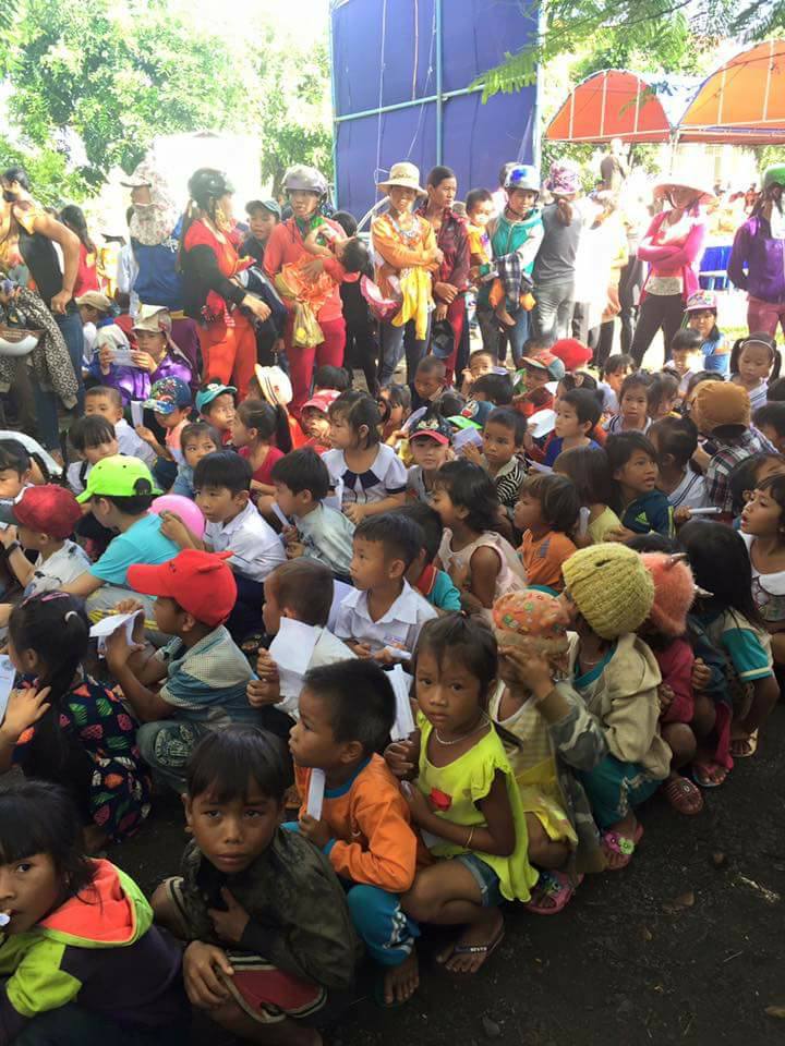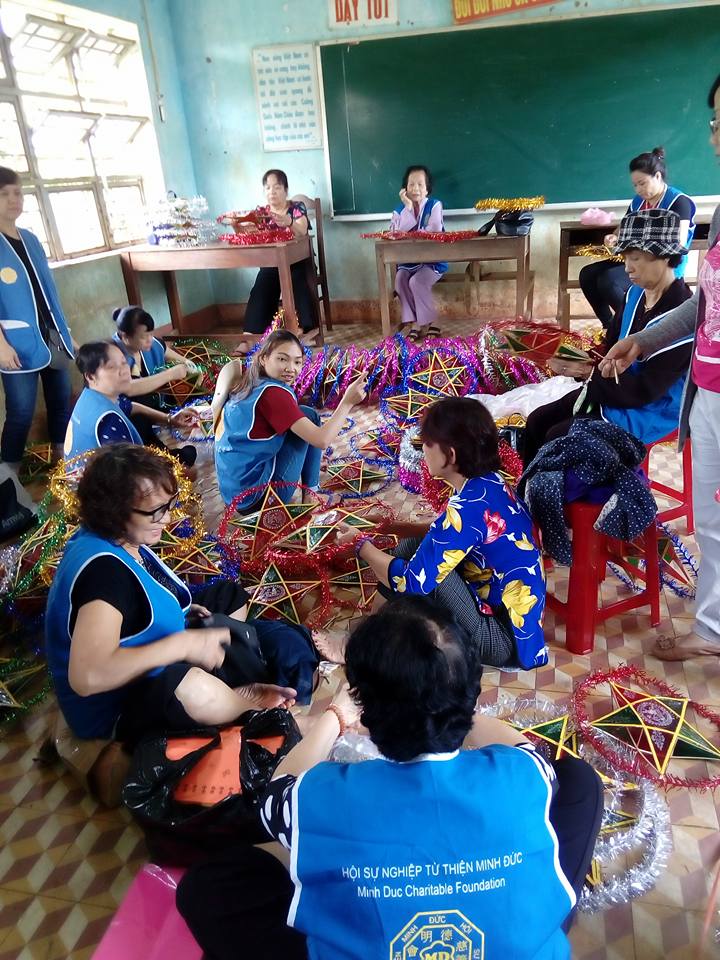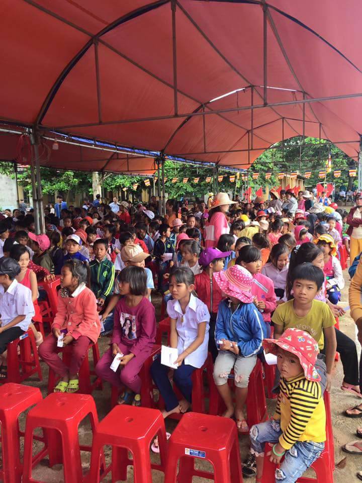 Hội sự nghiệp từ thiện Minh Đức đã trao 3115 phần quà gồm: cặp sách, vở, kem đánh răng, áo quần, bánh Trung thu cho các em thiếu nhi trên địa bàn xã.