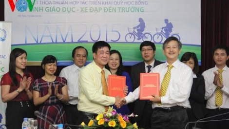 (VOV5) - Quỹ Bảo trợ trẻ em Việt Nam và Tổng Công ty Bảo Việt nhân thọ đã ký kết thỏa thuận hợp tác “Học bổng An sinh giáo dục – Xe đạp đến trường 2015”, trao 1.200 xe đạp cho trẻ em nghèo hiếu học