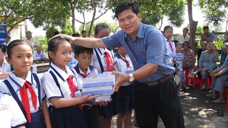 (VOV5)- Phó Chủ tịch nước Nguyễn Thị Doan đến dự và trao học bổng cho các em học sinh. Quà và học bổng với tổng trị giá hơn 1 tỷ đồng.