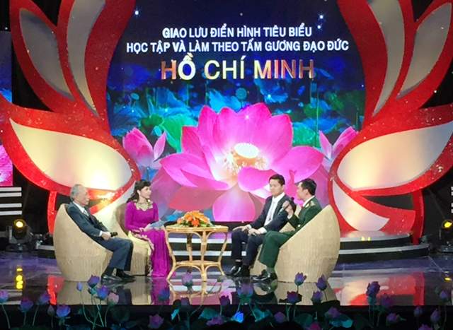 | Bác sỹ Vũ Mạnh Hà (ngồi thứ 2 bên phải) tại cuộc giao lưu các tấm gương tiêu biểu trong học tập và làm theo tấm gương đạo đức Hồ Chí Minh |