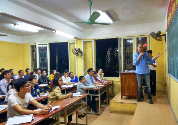 Lớp tiếng Anh của thầy Paul George Harding bắt đầu hoạt động từ tháng 12/2014. Lớp học thu hút sự tham gia của nhiều học viên, từ những em nhỏ tới học sinh, sinh viên, thậm chí cả những người lớn tuổi. Tại đây, thầy chủ yếu rèn kỹ năng nghe nói, phát âm tiếng Anh cho mọi người. Từ đầu tới cuối buổi học, lớp không ngớt tiếng thầy và trò luyện âm. Thầy giáo viết những cụm từ tiếng Anh lên chiếc bảng đen, tỉ mỉ phát âm từng từ. Ông Phạm Thành Sơn, một học viên lớn tuổi trong lớp tiếng Anh thầy Paul, cho biết: "Tôi năm nay đã hơn 60 tuổi. Tôi thấy học ở đây rất hợp lý và có ích. Thầy sửa cho từng người và thầy khuyến khích từng người một, sửa cho từng lỗi. Khi sửa thầy rất vui vẻ. Thầy làm nhiều động tác và cử chỉ để cho người học dễ nhớ, dễ học".