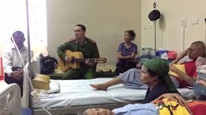 | Đồng chí Thượng úy Trần Anh Tuấn hát cho các bệnh nhân mắc bệnh hiểm nghèo tại Bệnh viên K |