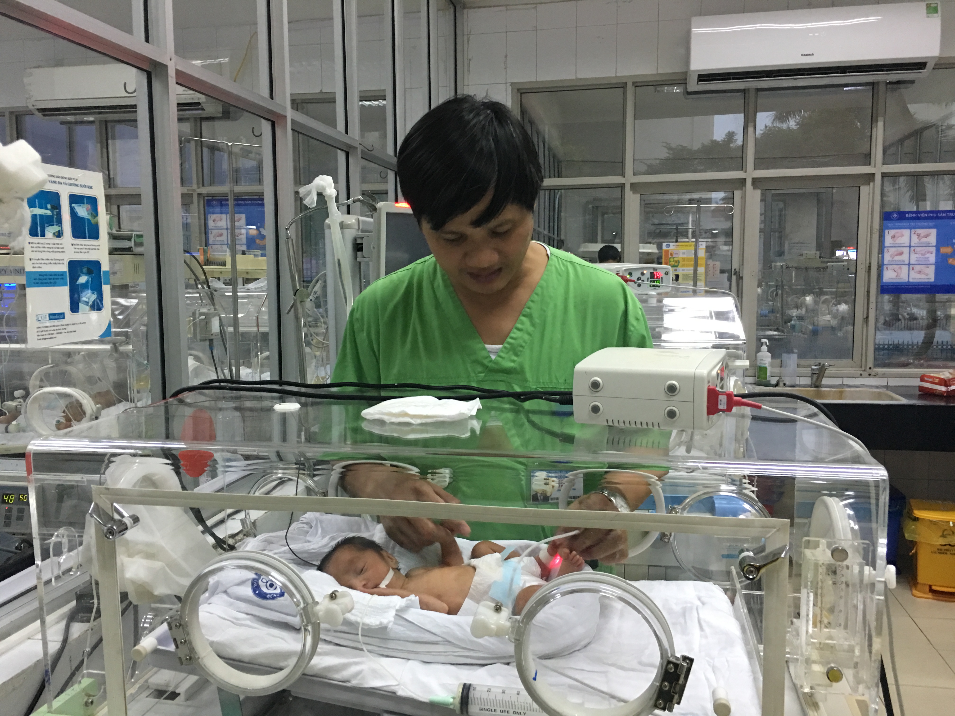 Hệ thống chăm sóc trẻ sinh non bao gồm máy móc và bác sĩ cùng các điều dưỡng theo dõi 24/24h. Chỉ nghe tiếng tít tít, bíp bíp, ting ting, ro ro…, những bóng áo xanh lá cây sẽ phân biệt được đâu là tín hiệu cơn ngừng thở, tím tái, hạ thân nhiệt, thông số lồng ấp thay đổi… Cả ngày, họ tất bật, chạy đôn chạy đáo để xem xét, ghi chép, rồi làm thuốc… Với 8 năm kinh nghiệm, điều dưỡng Mai Thanh Hải kể, ngày đầu trực tua, nghe tiếng máy kêu ro ro suốt ngày, chị ong đầu đến tận hôm sau. Nhưng đến nay, những âm thanh đó đã trở thành một phần không thể thiếu trong cuộc sống của chị. Điều khiến các điều dưỡng và bác sĩ ở đây lo lắng nhất là nguy cơ có thể xảy ra hạ thân nhiệt, hạ đường huyết, suy hô hấp, nhiễm khuẩn, vàng da, viêm ruột hoại tử… Bởi vậy, sự tập trung theo dõi cao độ là tối quan trọng, nếu không, có thể ảnh hưởng đến tính mạng của trẻ.