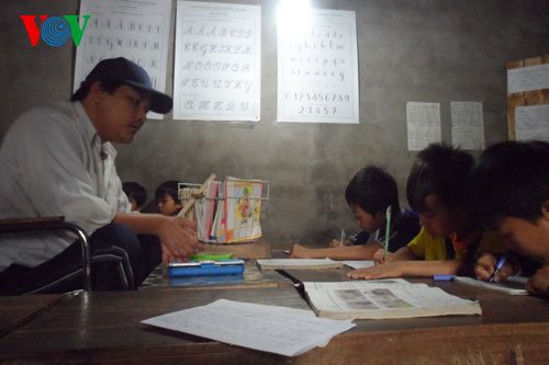 | Anh Phùng Văn Trường đang dạy các cháu học (Ảnh: vov.vn) |