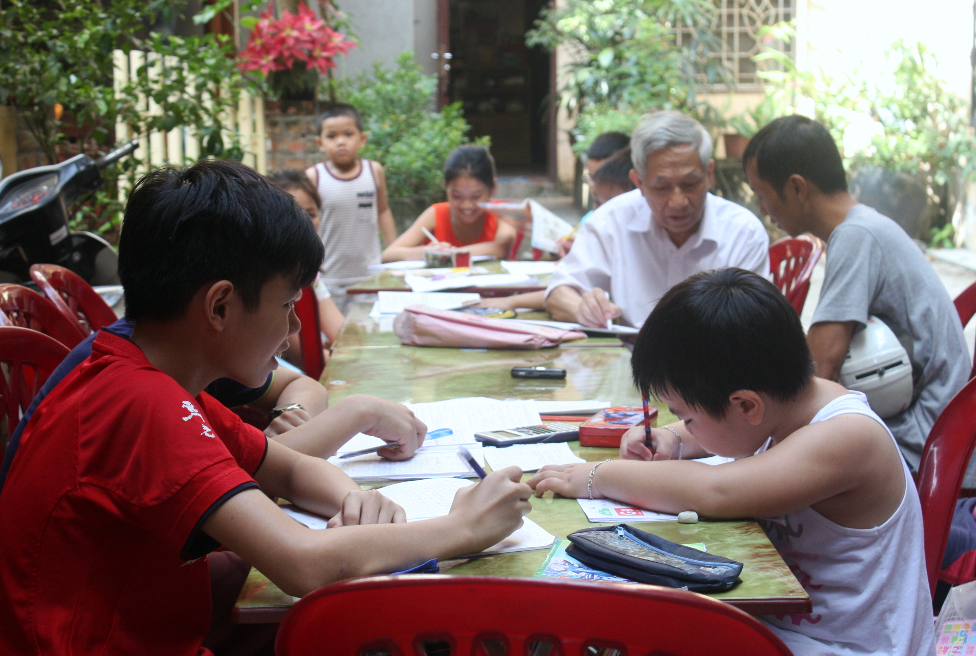 Lớp học Hướng thiện ra đời từ đó. Lớp ban đầu chỉ có vài học sinh. Rồi tiếng lành đồn xa, ngày càng nhiều người gửi gắm con em đến lớp thầy Trà. Người thầy giáo già vẫn gọi lớp bằng cái tên vui là lớp học “lẩu thập cẩm”. Bởi ở đây thầy dạy nhiều môn: từ toán, vật lý, địa lý cho tới các ngoại ngữ Anh, Pháp, Đức... Lớp lại hội tụ học sinh ở nhiều lứa tuổi, hoàn cảnh khác nhau. Từ các em nhỏ chuẩn bị bước vào lớp một cho tới những học sinh cấp 3. Nhiều người đi xuất khẩu lao động không có tiền học ngoại ngữ ở trung tâm cũng được thầy nhận dạy miễn phí. Thầy Trà hiểu rõ từng người một, ai giỏi môn gì, yếu môn gì. Thậm chí, ông nắm bắt cả hoàn cảnh gia đình các em, để động viên và chia sẻ.