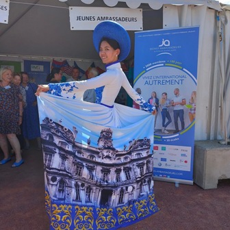 Nhận thức được giá trị của áo dài không chỉ trong nước mà còn ở nước ngoài, nhiều hội, đoàn người Việt cũng chú trọng vào các hoạt động tôn vinh và quảng bá trong nhiều sự kiện, dịp lễ Tết. Hội doanh nhân Việt Nam tại Pháp là một trong những hội thường xuyên quan tâm tới hoạt động này. Các bộ áo dài của Hội do các nhà thiết kế Việt Nam tạo ra và được chính các thành viên trong hội vẽ hình ảnh lên vải. Chị Vũ Lê Thùy Dương, thành viên của Hội cho biết: Hội cũng thiết kế 2 áo dài, đầu tiên mặt trước in hình hồ Hoàn Kiếm Việt Nam, mặt sau in hình một nơi nổi tiếng của Pháp. Một bạn ở hội doạnh nhân vẽ ở trên là một người con gái Việt Nam, ở dưới là hình tháp Effel. Sự kết hợp giữa Việt Nam và Pháp. Trong đoàn thanh niên có những bạn học thiết kế nên các bạn thiết kế áo cho Hội.