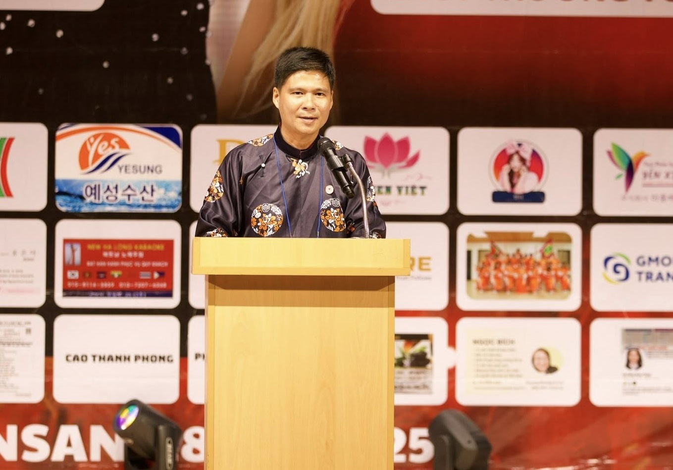 Ông Đặng Thanh Kim Vũ, Chủ tịch Hội Từ thiện Việt Nam tại Hàn Quốc, phát biểu tại chương trình. |