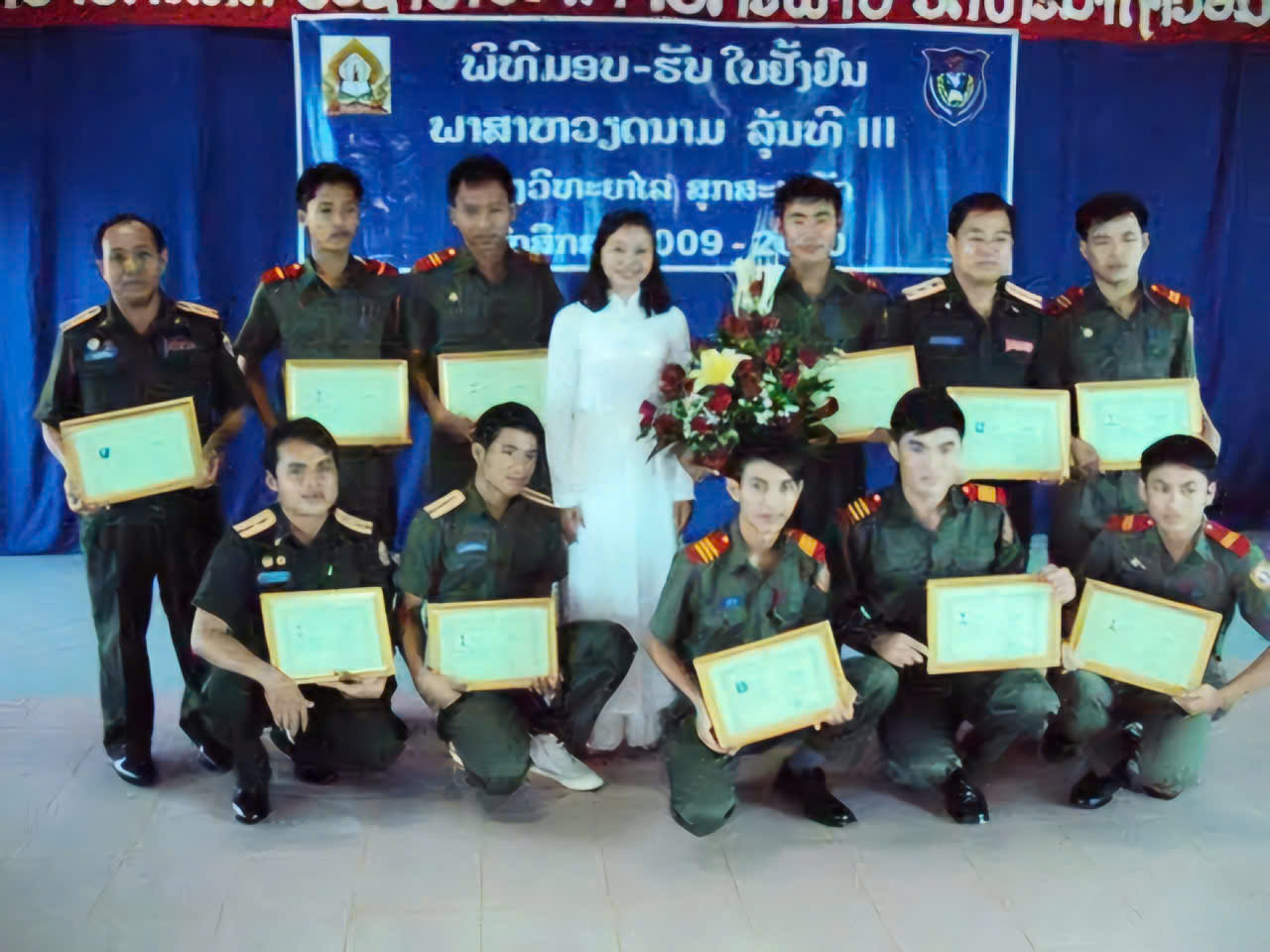 4. Thạc sĩ Nguyễn Thị Hiền nhận bằng khen của Đại sứ Đặc mệnh toàn quyền ĐSQ Việt Nam tại Lào về thành tích trong giảng dạy tiếng Việt và truyền bá Văn hóa tại Lào. Ảnh nvcc |