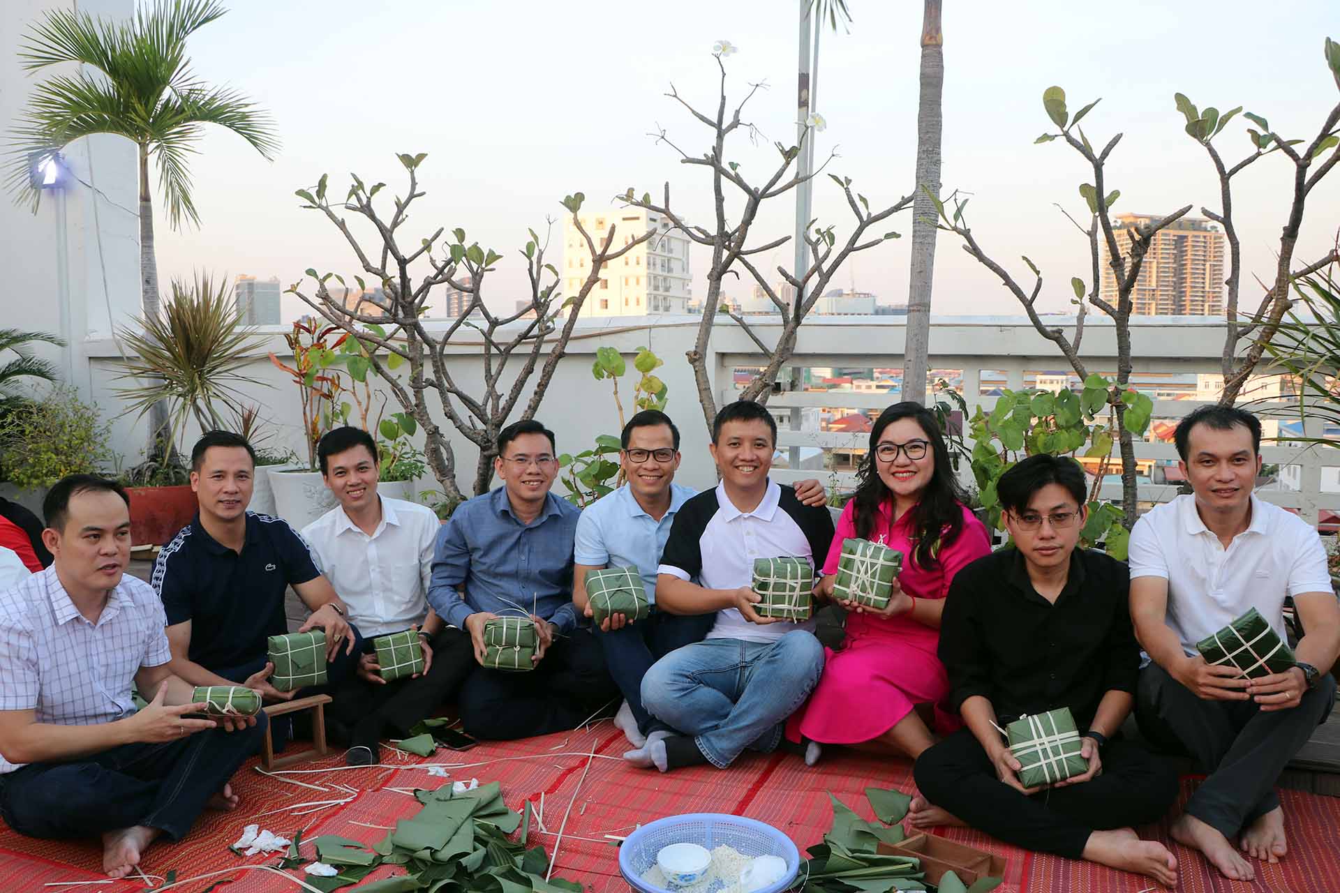 Tối qua 27/1 (28 Tết), tại Thủ đô Phnom Penh của Campuchia, các cán bộ, nhân viên của Công ty Viettel tại Campuchia (Metfone) tham gia sự kiện gói bánh chưng.