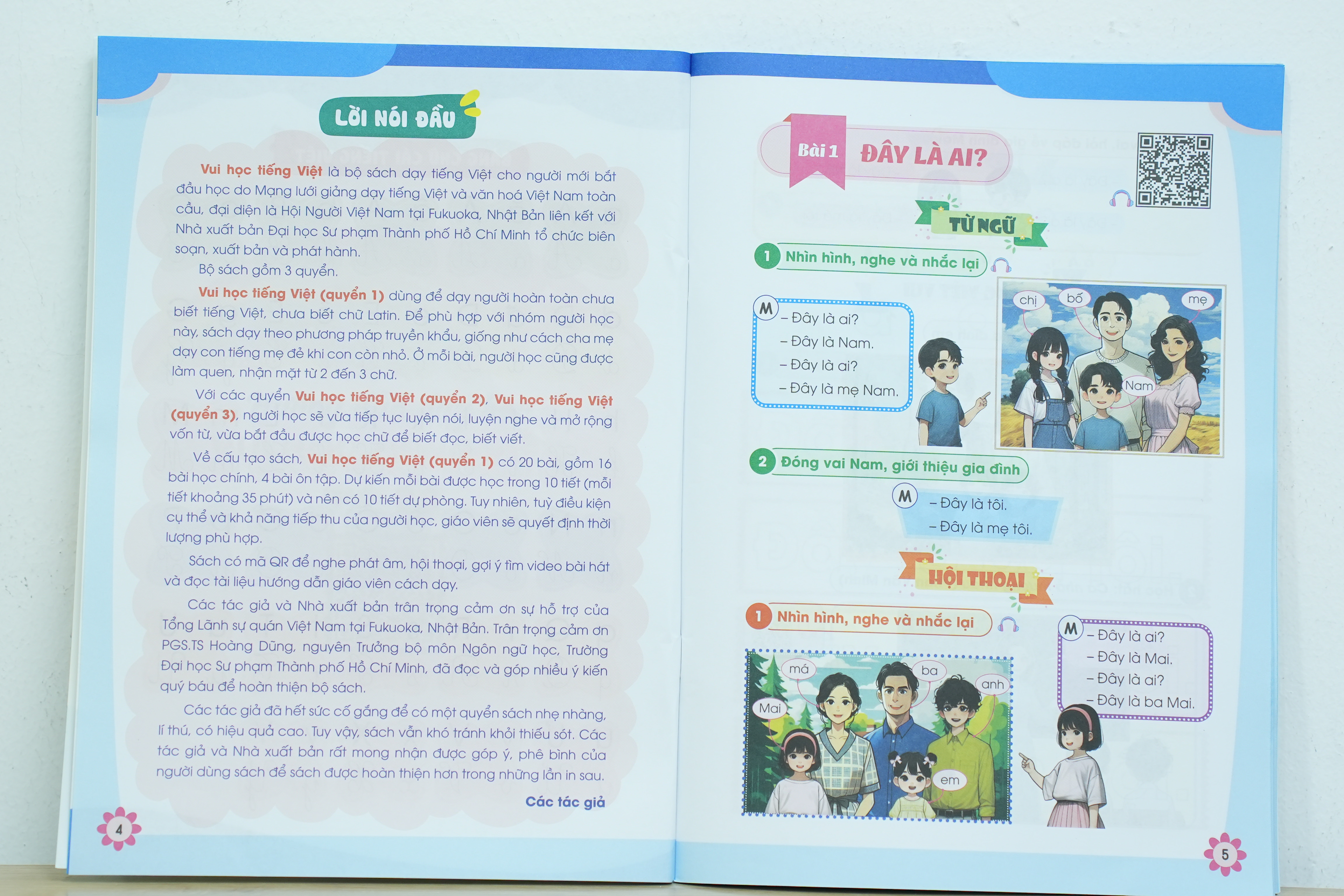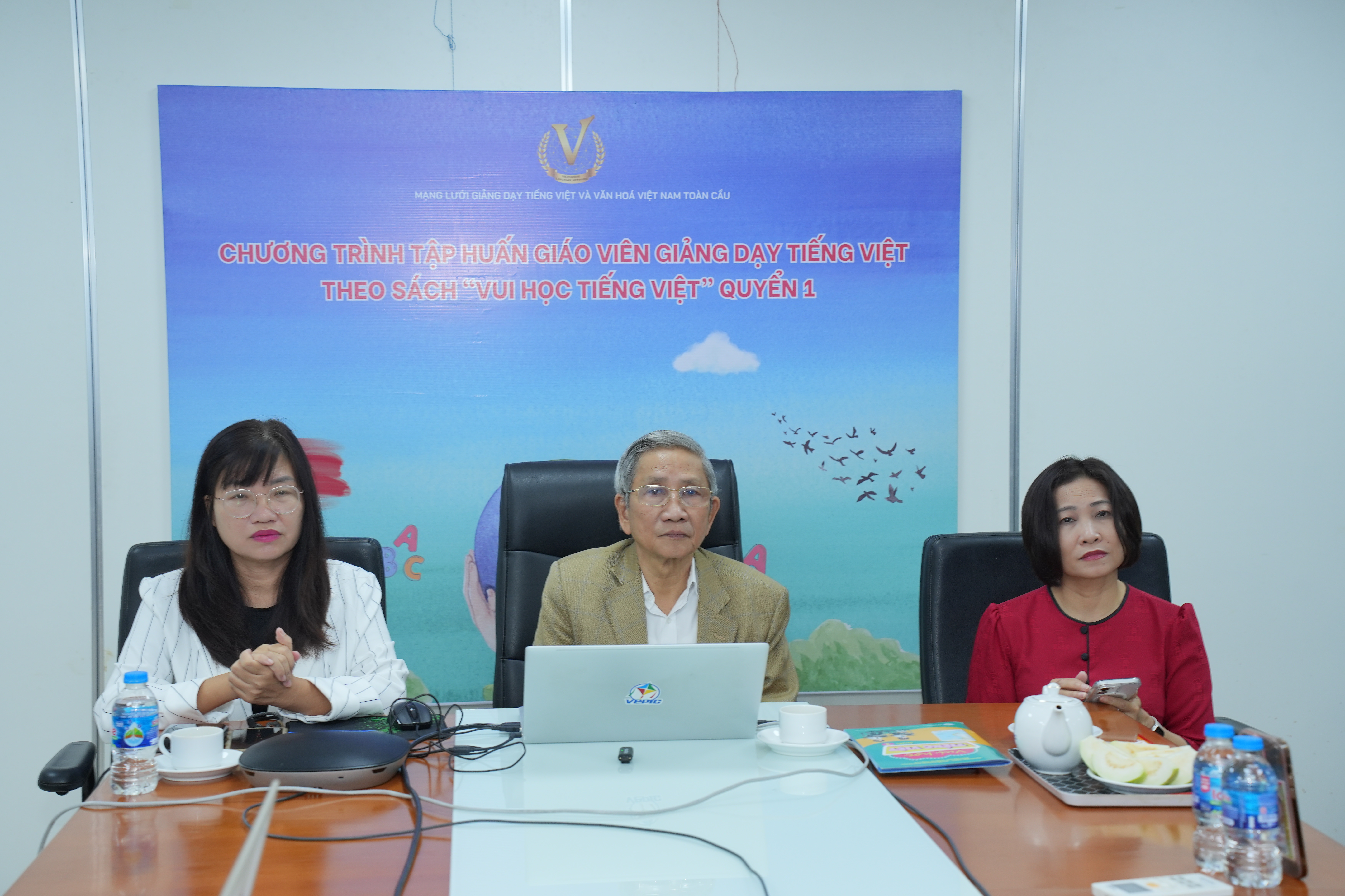 Trong phần phát biểu, GS.TS Nguyễn Minh Thuyết chia sẻ: “Bộ sách Vui học tiếng Việt được biên soạn theo hướng hội nhập quốc tế, chú trọng yếu tố vui học, giao tiếp tự nhiên và tích hợp văn hoá Việt Nam trong từng bài học. Chúng tôi mong các thầy cô sẽ trở thành cầu nối lan tỏa ngôn ngữ, văn hoá, và tinh thần Việt Nam đến thế hệ trẻ kiều bào.”