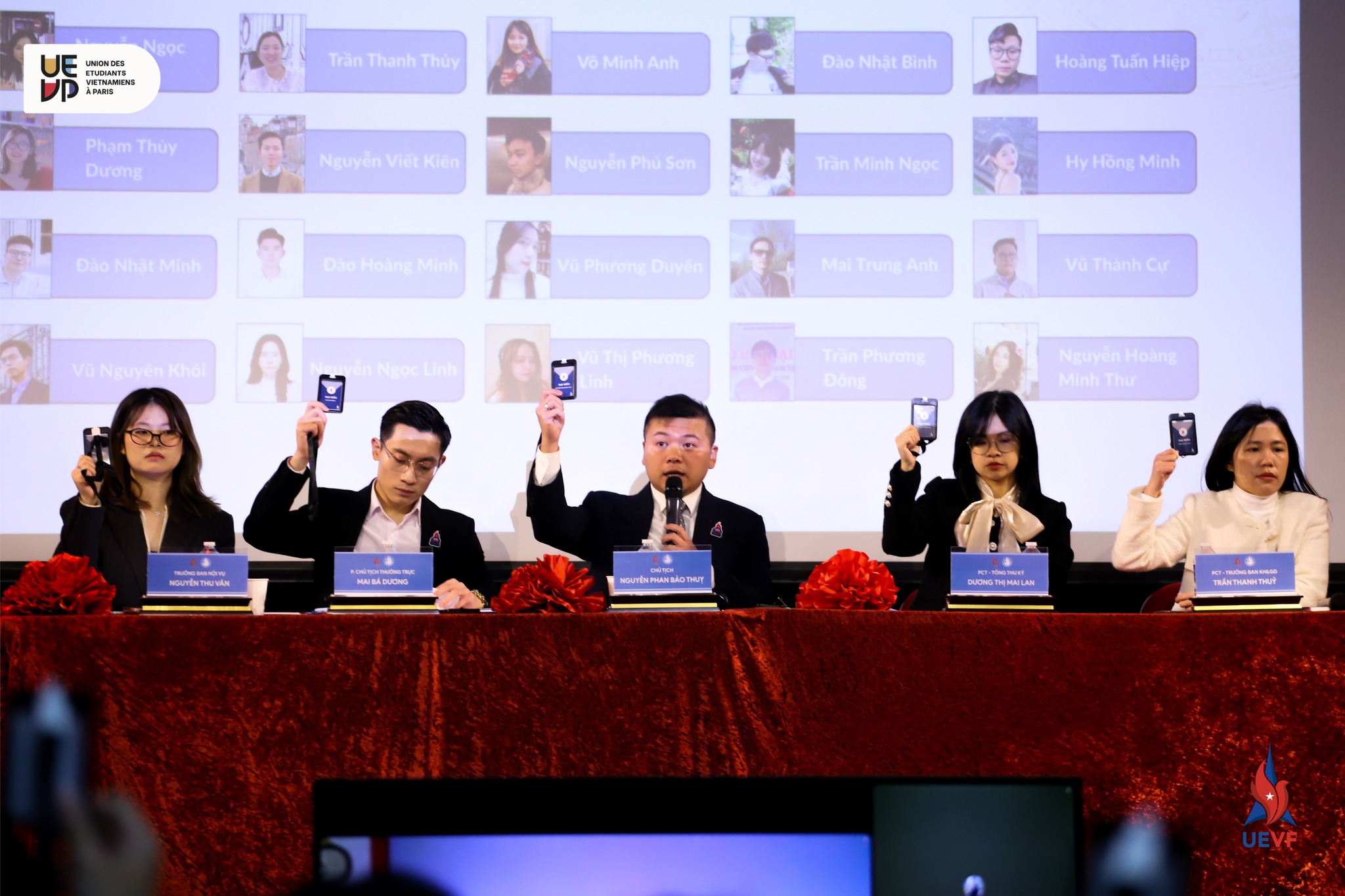 Anh Nguyễn Phan Bảo Thụy ( giữa) tại Đại hội Ban Chấp hành Hội TNSVVN tại Pháp. Ảnh: FBNV