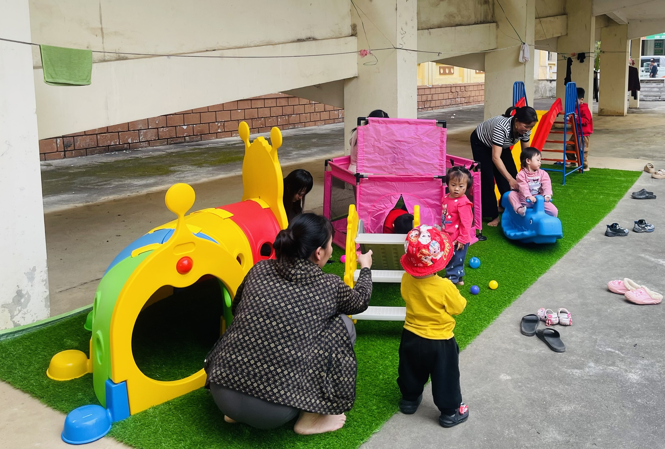 Và sau khi sân chơi đã được lắp đặt |