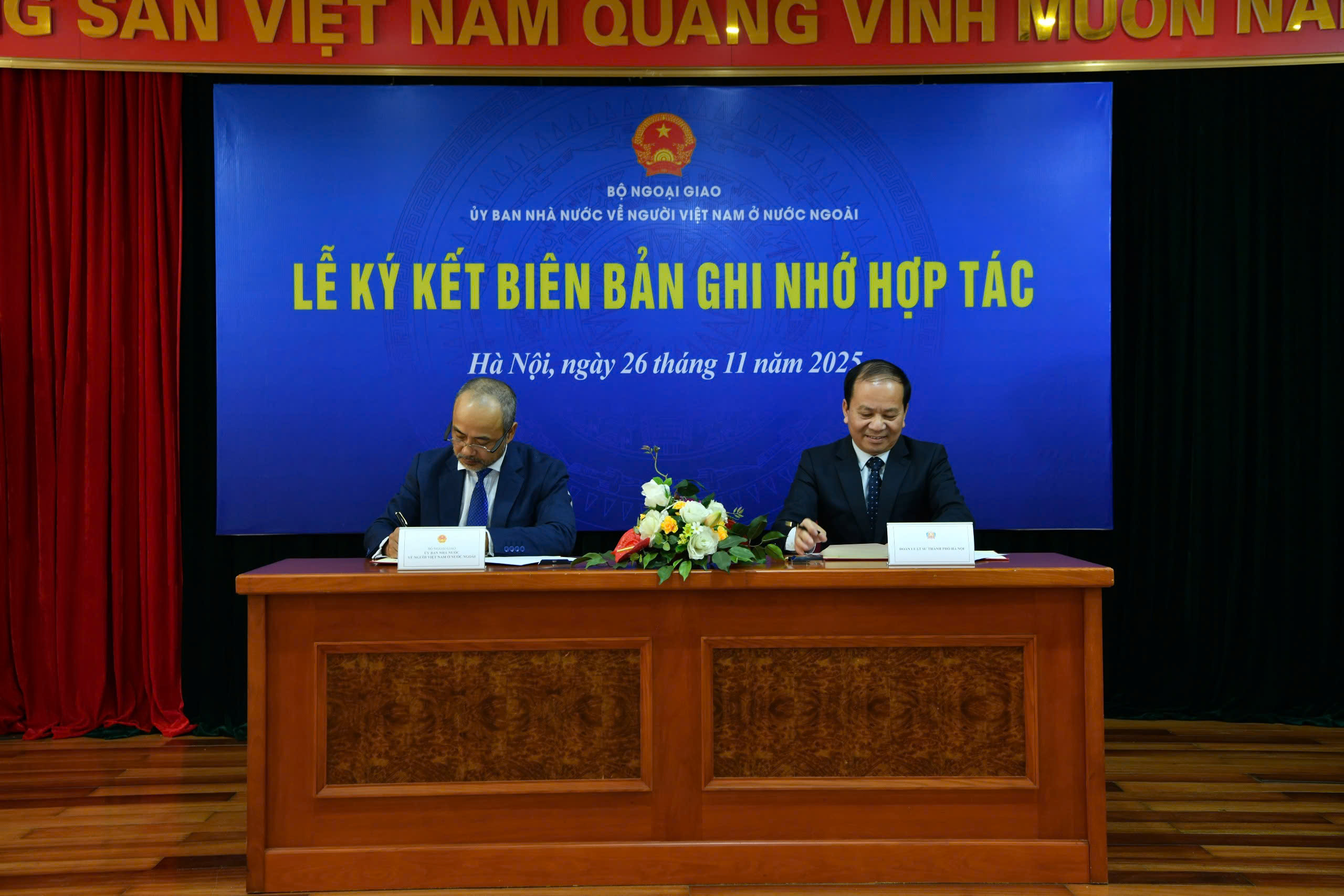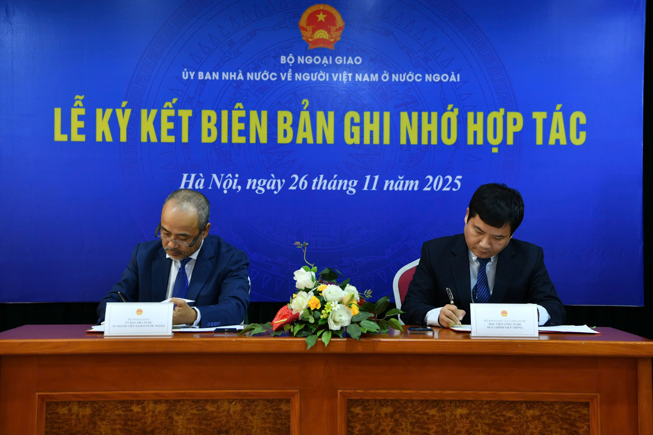 Chiều 26/11, tại trụ sở Ủy ban Nhà nước về người Việt Nam ở nước ngoài, Bộ Ngoại giao (Ủy ban), diễn ra Lễ ký kết Biên bản ghi nhớ hợp tác giữa Ủy ban với Học viện Công nghệ Bưu chính Viễn thông; và Kế hoạch hợp tác giữa Ủy ban với Đoàn Luật sư Thành phố Hà Nội.