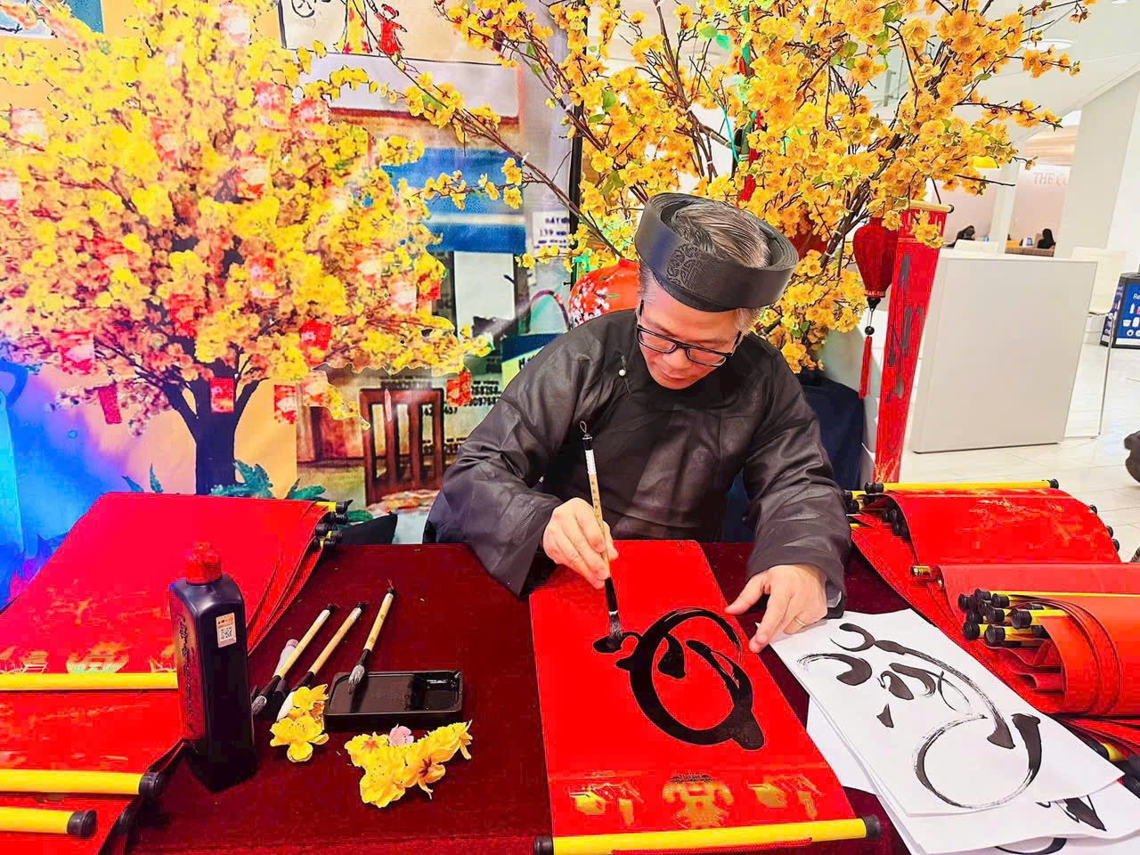 Ở Australia, nơi tôi sống, nếu tôi đón Tết cùng gia đình bên đó, thể nào cũng “bị” mời làm “Ông đồ” cho chữ. Mỗi lần làm “Ông đồ” như vậy, tôi thực sự vui và cảm xúc đó khiến tôi quên mệt. Tôi vui không phải vì bản thân mình là “Ông đồ”, mà tôi vui vì người Việt chúng ta trân trọng nét văn hóa và trân trọng tiếng Việt của mình. Và hơn nữa là trong số những người xin chữ, có cả những chàng rể và nàng dâu “Tây”. Họ thích thú, xếp hàng dài để chờ đến lượt và trầm trồ những nét chữ Việt trên nền giấy đỏ.