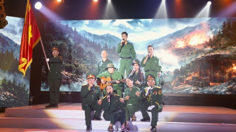 (VOV5) - Điểm nhấn của chương trình là không gian nghệ thuật giàu cảm xúc, nơi khán giả được sống lại những năm tháng hào hùng của dân tộc qua các ca khúc cách mạng.