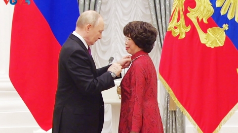(VOV5) - Tổng thống Putin đã trao tặng Huân chương hữu nghị, phần thưởng cao quý của Nhà nước Nga cho anh hùng lao động Thái Hương, Nhà sáng lập, Chủ tịch Hội đồng Chiến lược Tập đoàn TH.