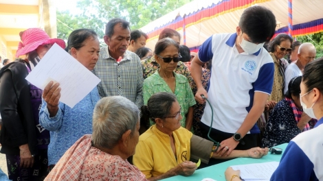 (VOV5) - 500 người dân, bao gồm 250 người gốc Việt và 250 người Campuchia tại tỉnh Takeo, được khám, tầm soát bệnh, tư vấn sức khỏe, cấp phát thuốc miễn phí.
