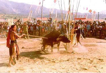 (VOV5) - Lễ hội đâm trâu được người Bana gọi là x'trǎng, là một lễ hội tế thần linh, ăn mừng chiến thắng, mừng mùa màng bội thu, mừng lễ hội mùa xuân hay mừng các sự kiện trọng đại trong năm. Tuỳ theo hoàn cảnh ở từng địa phương mà bà con tổ chức lễ đâm trâu.