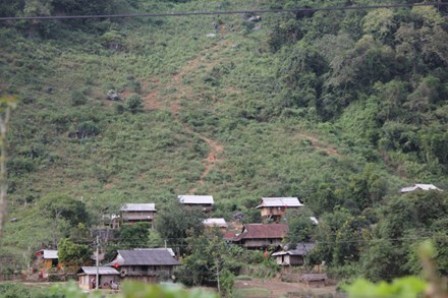 Bản làn Pa Xa Xá dưới chân núi Pa Thơm, nơi sinh sống của người Khơ-mú.