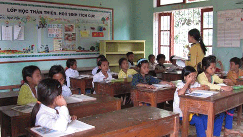 Trẻ em đồng bào dân tộc thiểu số đến trường học chữ Bác Hồ. Ảnh:nhandan.com.vn