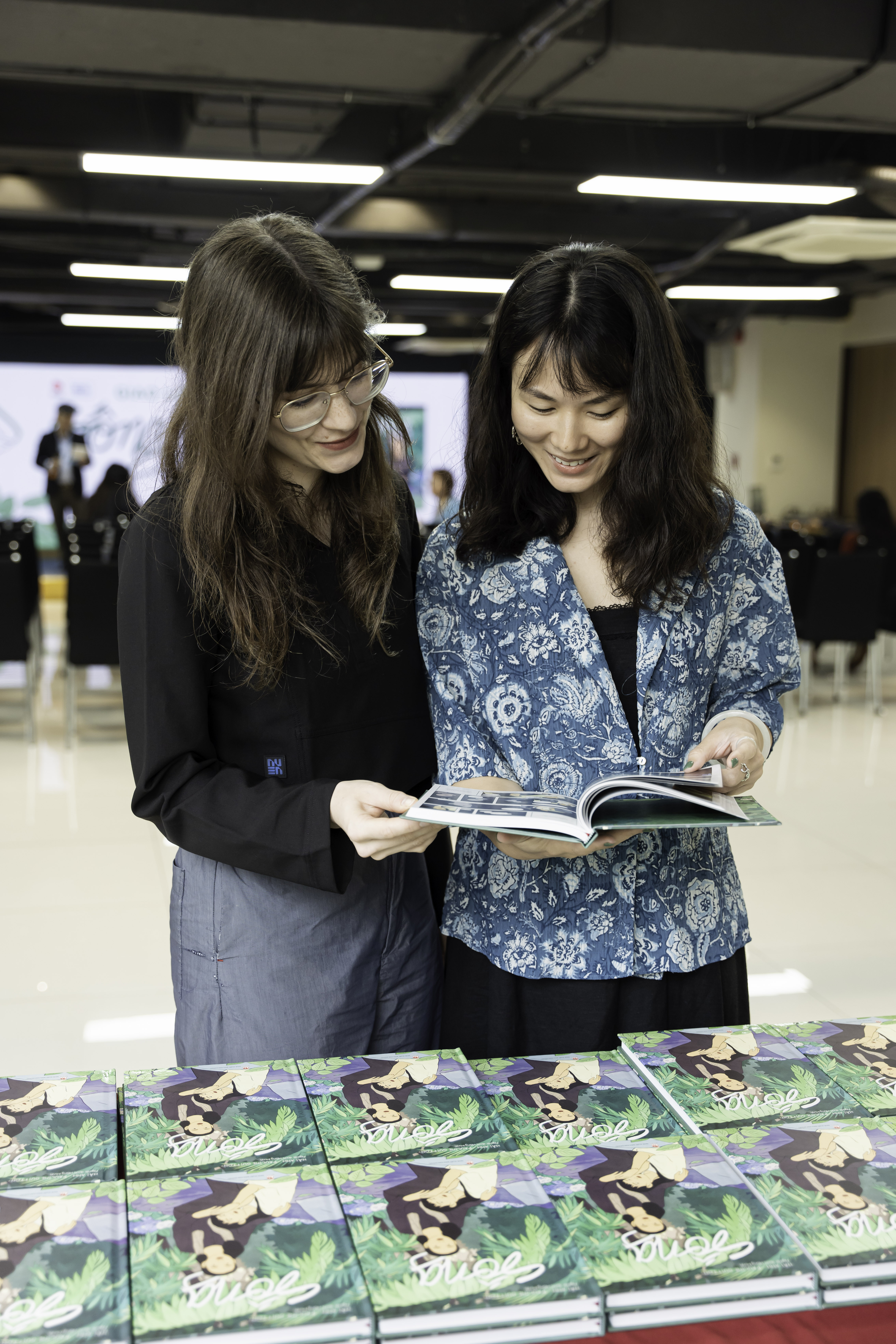 Hai nữ tác giả tại hội trường buổi ra mắt sách. - Ảnh: KĐ |