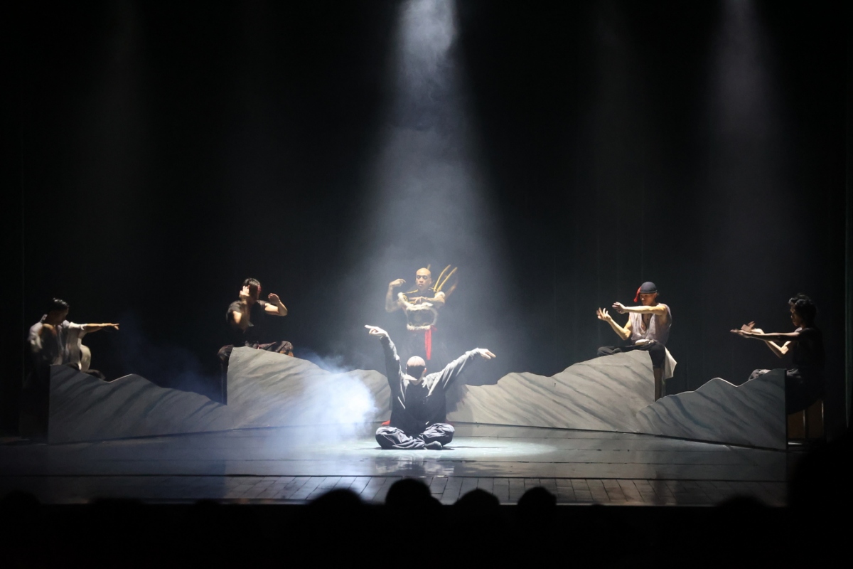 Trong suốt vở diễn, trên nền ánh sáng ma mị; tiếng trống tế, đàn tranh, đàn bầu và âm nhạc điện tử tạo nên không khí vừa căng thẳng vừa hùng tráng, huyền bí mang đến nhiều ấn tượng cho công chúng yêu nghệ thuật.