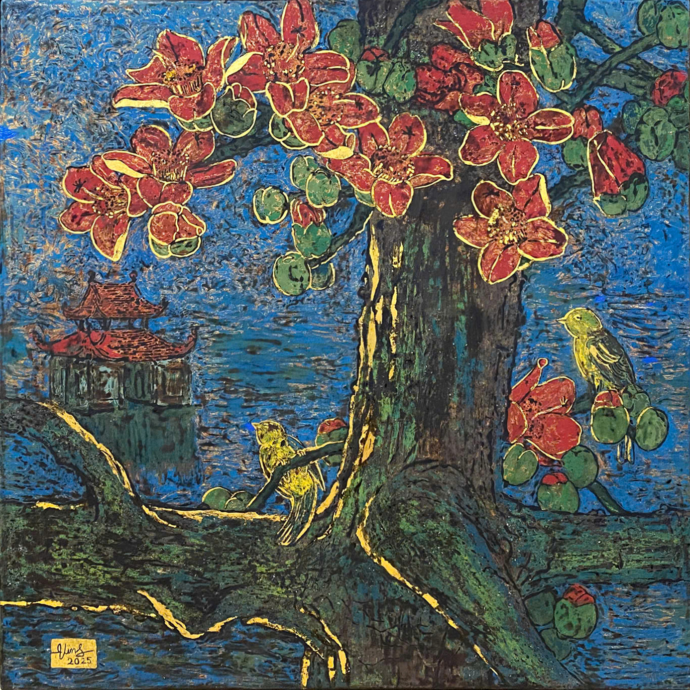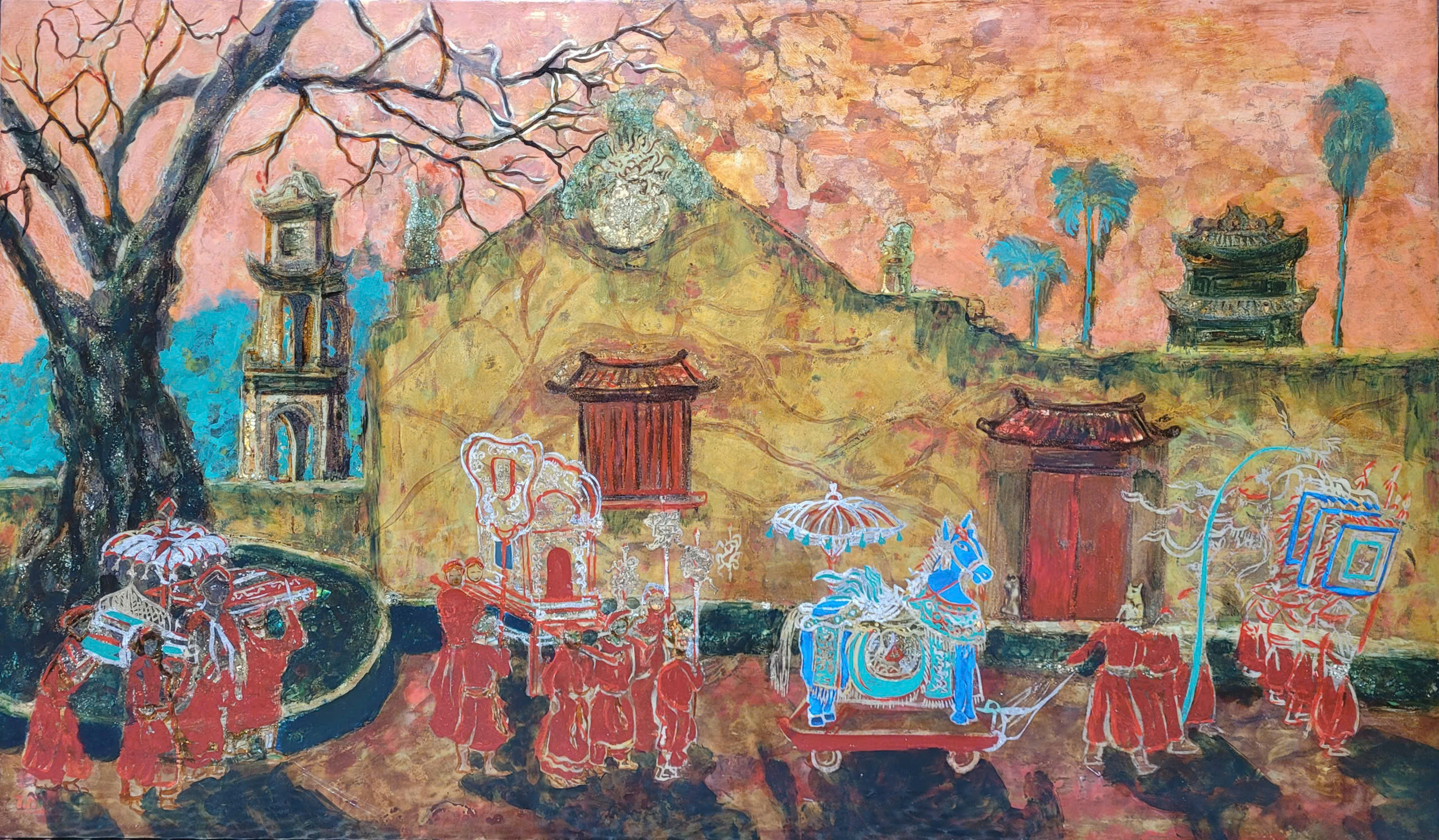 Họa sĩ Nguyễn Tiến Ngọc tiếp tục khai thác những chủ đề sinh hoạt làng quê Bắc Bộ, lễ hội truyền thống, những mái đình, mái chùa trong không khí Tết ấm áp, sôi động. Họa sĩ Bùi Thanh Lâm và Đỗ Hoàng Minh với những sáng tác sơn mài phong cảnh, với hình ảnh nên thơ của cánh cò trắng trên đồng lúa chín vàng, bông hoa gạo nở đỏ tháng Ba, những góc vườn nhỏ xinh nơi có rặng tre ngà…