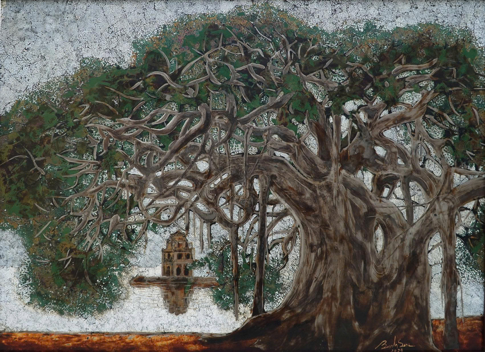 Họa sĩ Nguyễn Bỉnh Sơn tiếp tục với những sáng tác mang nỗi hoài niệm về làng quê với cây đa, mái đình. Loạt tranh sơn mài về những cây đa cổ thụ anh vẽ trong nhiều năm, với những biểu hiện khác nhau, từ làng quê ra phố thị, cho thấy nỗi ám ảnh của người họa sĩ cũng như khẳng định giá trị trường tồn, như chứng nhân của lịch sử của những cây đa cổ thụ. Các tác phẩm đều cho thấy kĩ thuật tạo chất của họa sĩ Nguyễn Bỉnh Sơn trong việc chồng nhiều lớp màu, với sự ngẫu hứng trong tạo hình. Đáng lưu ý, họa sĩ thể hiện sự chắc chắn trong kĩ thuật dùng vỏ trứng, biểu đạt không gian có chiều sâu, tạo ra độ rung cảm.
