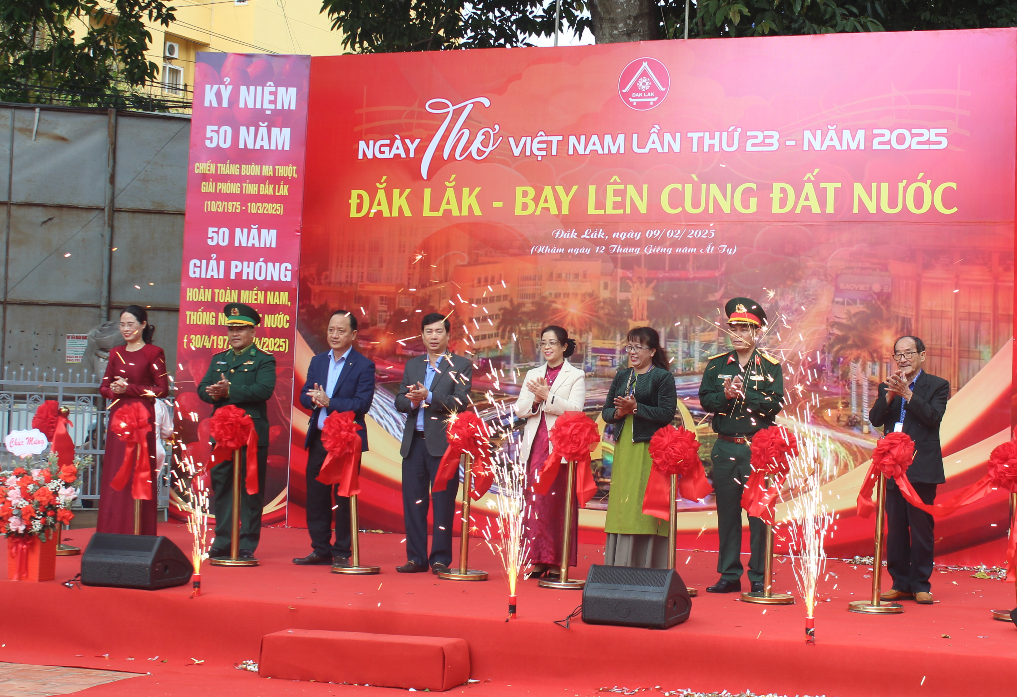 Với chủ đề “Đắk Lắk – Bay lên cùng đất nước”. Chương trình Ngày Thơ lần thứ 23 tại Đắk Lắk diễn ra ngày 9/2 với nhiều hoạt động sôi nổi như: biểu diễn lân sư rồng, diễn tấu chiêng, hòa tấu nhạc cụ dân tộc, trình diễn thơ – nhạc, trưng bày sách, ảnh nghệ thuật, thư pháp và tọa đàm văn học với chủ đề “Thơ ca Việt Nam, Đắk Lắk - 50 năm sau ngày đất nước thống nhất”. Trưng bày, giới thiệu các ấn phẩm thơ và nhiều loại hình văn học nghệ thuật như mỹ thuật, nhiếp ảnh, văn nghệ dân gian,...
