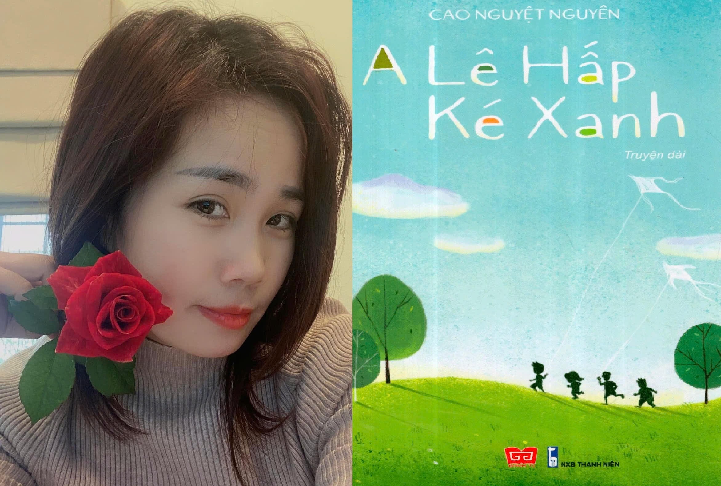 Nhà văn Cao Nguyệt Nguyên và tiểu thuyết "A Lê Hấp - Kẻ Xanh" được nhiều bạn trẻ mến mộ. Ảnh: Tác giả cung cấp