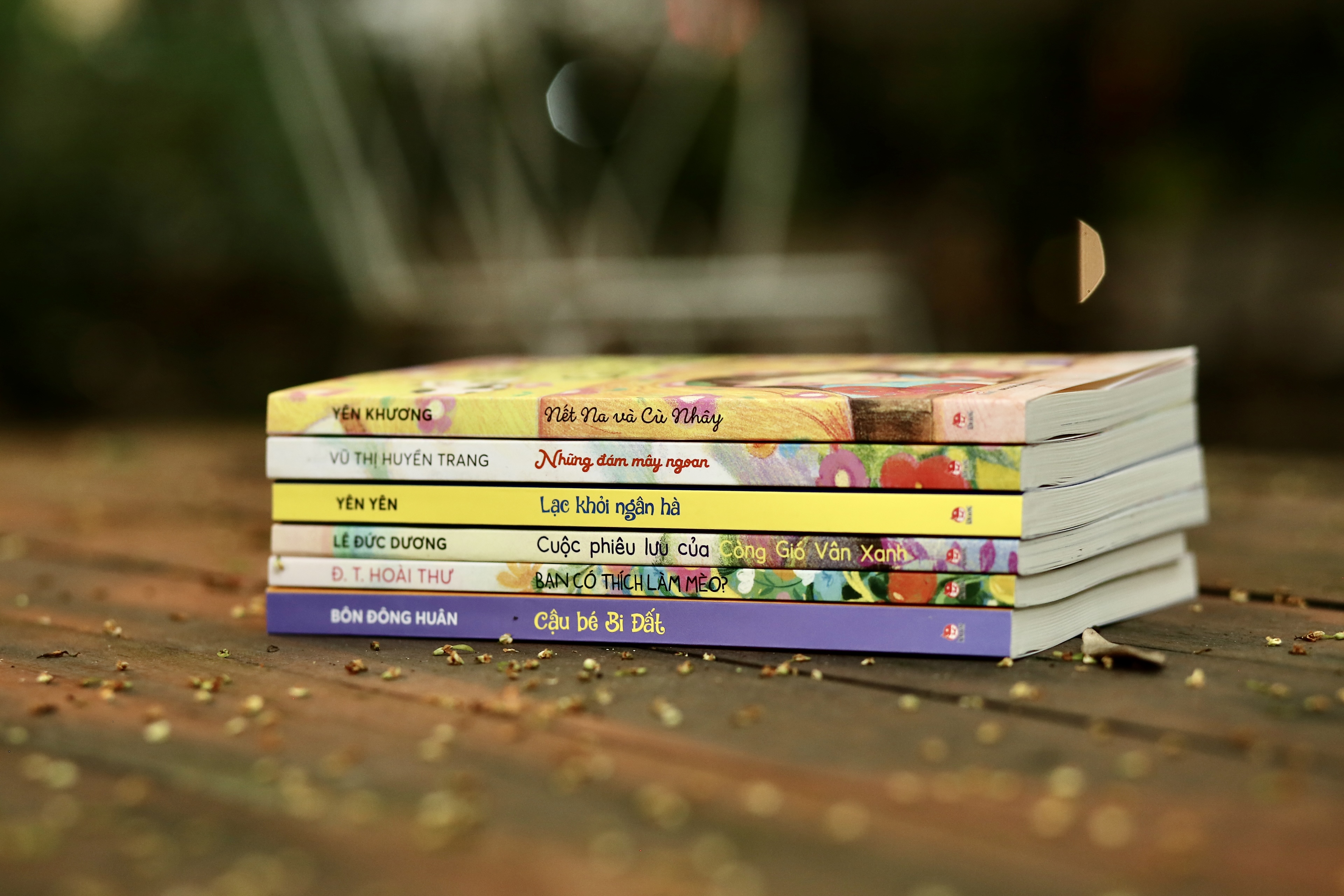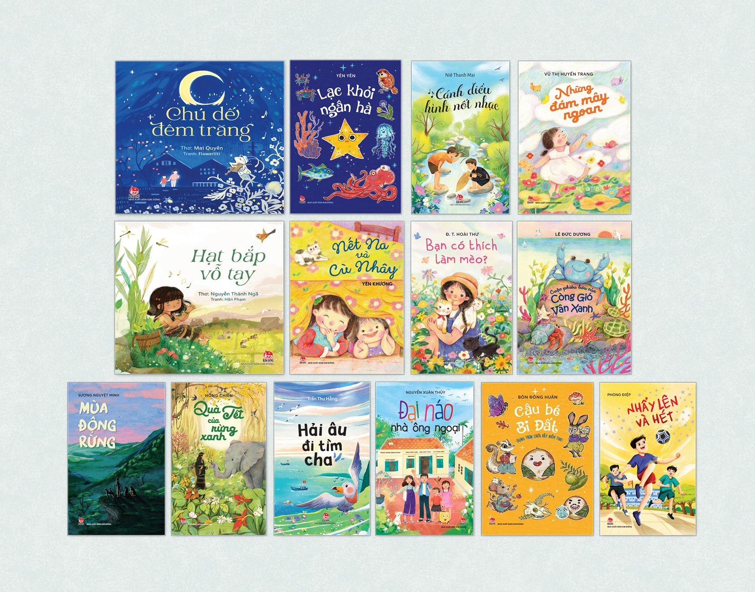 Đó là các tác phẩm: Bạn có thích làm mèo?, truyện dài của Hoài Thư; Cánh diều hình nốt nhạc, truyện dài của Niê Thanh Mai; Cậu bé Bi Đất (bụng tròn chứa đầy niềm tin!) truyện dài của Bôn Đông Huân ; Chú dế đêm trăng, tập thơ của Mai Quyên; Cuộc phiêu lưu của Còng Gió Vân Xanh, truyện dài của Lê Đức Dương; Đại náo nhà ông ngoại, truyện dài của Nguyễn Xuân Thủy; Hải âu đi tìm cha, truyện dài của Trần Thu Hằng; Hạt bắp vỗ tay, thơ của Nguyễn Thánh Ngã; Lạc khỏi ngân hà, truyện dài của Yên Yên; Mùa động rừng, tiểu thuyết của Sương Nguyệt Minh; Nết Na và Cù Nhây, truyện dài của Yên Khương; Nhẩy lên và hét, truyện dài của Phong Điệp; Những đám mây ngoan, truyện ngắn của Vũ Thị Huyền Trang ; Quà Tết của rừng xanh, truyện ngắn của Hồng Chiến và 3 tác phẩm đang được in Thám tử Hai Da, Tàu Lá Chuối và thằng Giôn của Nguyễn Quang Lập; Tên tớ là Hy Vọng của Y Ban và Sông còn chưa cạn của Lê Minh Hà.