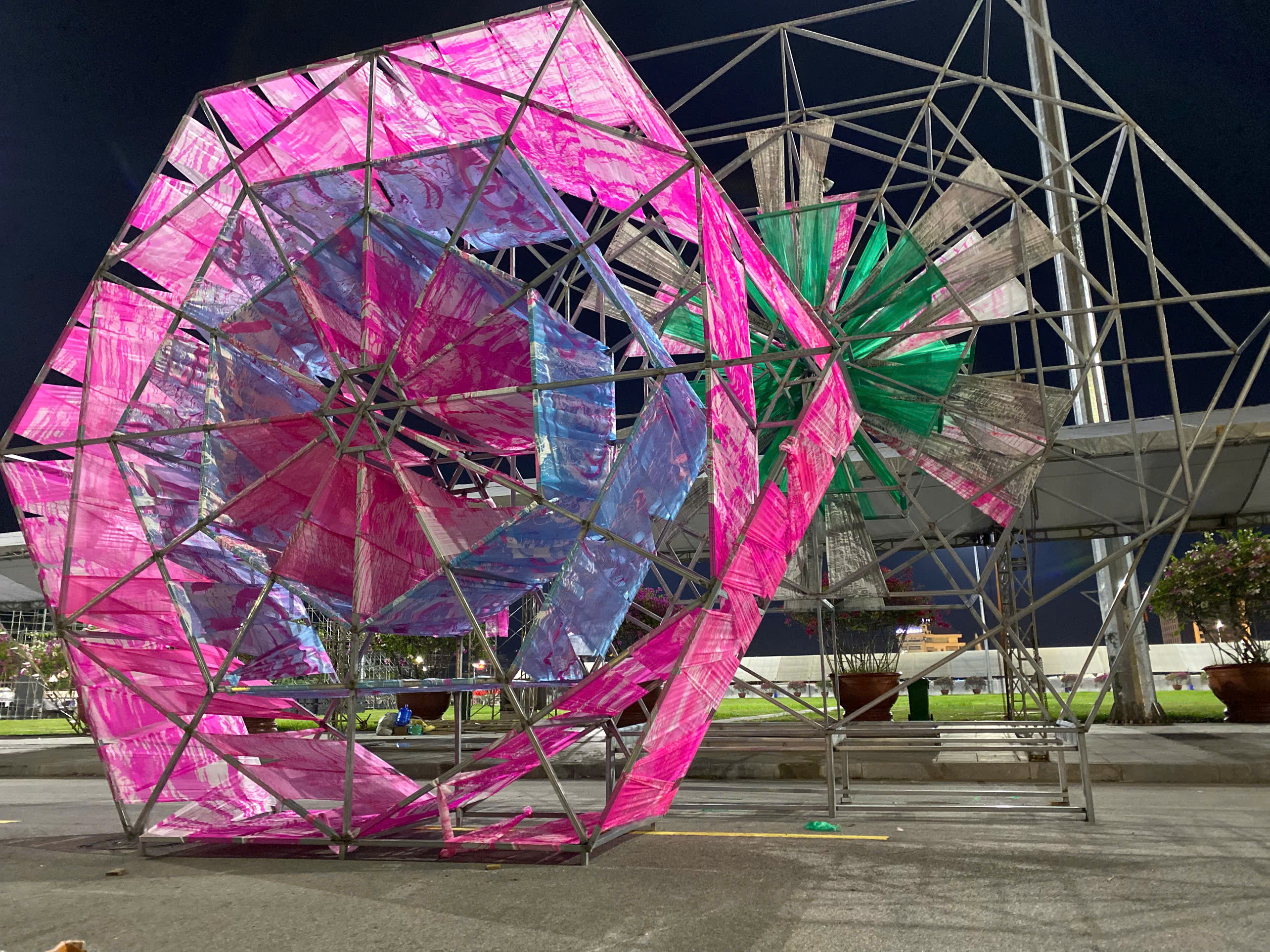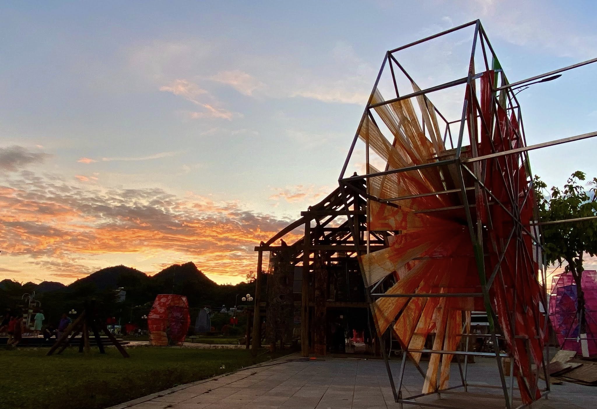 Triển lãm sắp đặt “Xống chụ xon xao” diễn ra tại quảng trường tỉnh Sơn La kể lại câu chuyện tình yêu cũng như vẻ đẹp tâm hồn người phụ nữ Thái, bằng tác phẩm hội họa, âm nhạc và các vật dụng dệt vải quen thuộc trong đời sống thường nhật của họ…