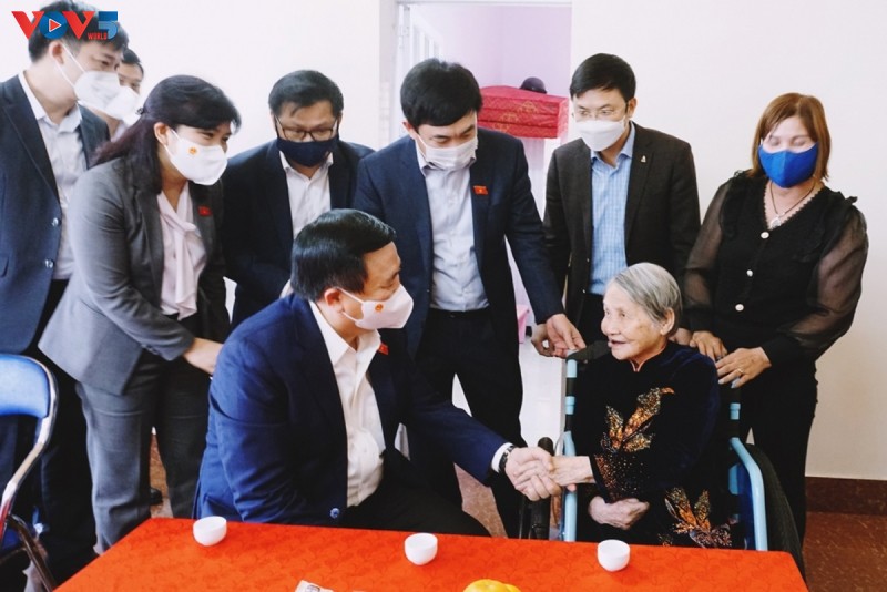 Ủy viên Bộ Chính trị, Giám đốc Học viện Chính trị Quốc gia Hồ Chí Minh, Chủ tịch Hội đồng Lý luận Trung ương Nguyễn Xuân Thắng thăm Mẹ Việt Nam Anh hùng tại TX Đông Triều. Ảnh: VOV |
