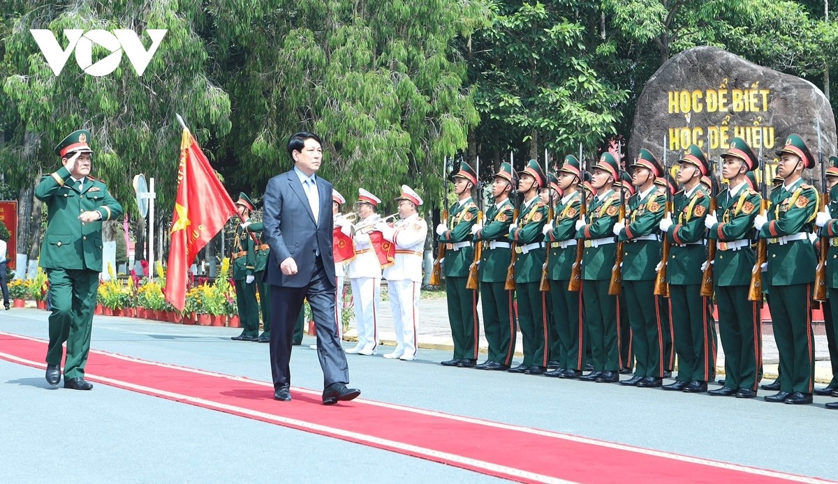 Chủ tịch nước Lương Cường thăm, chúc Tết Lực lượng vũ trang Quân khu 9. Ảnh: VOV |