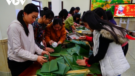 Người Việt tại Bắc Kinh (Trung Quốc) gói bánh chưng đón Tết