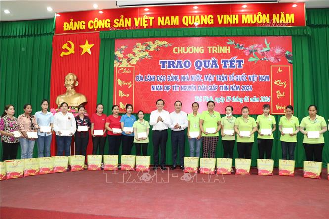 Đoàn công tác tặng quà Tết cho công nhân, người lao động - Ảnh: Thanh Hoà/TTXVN |