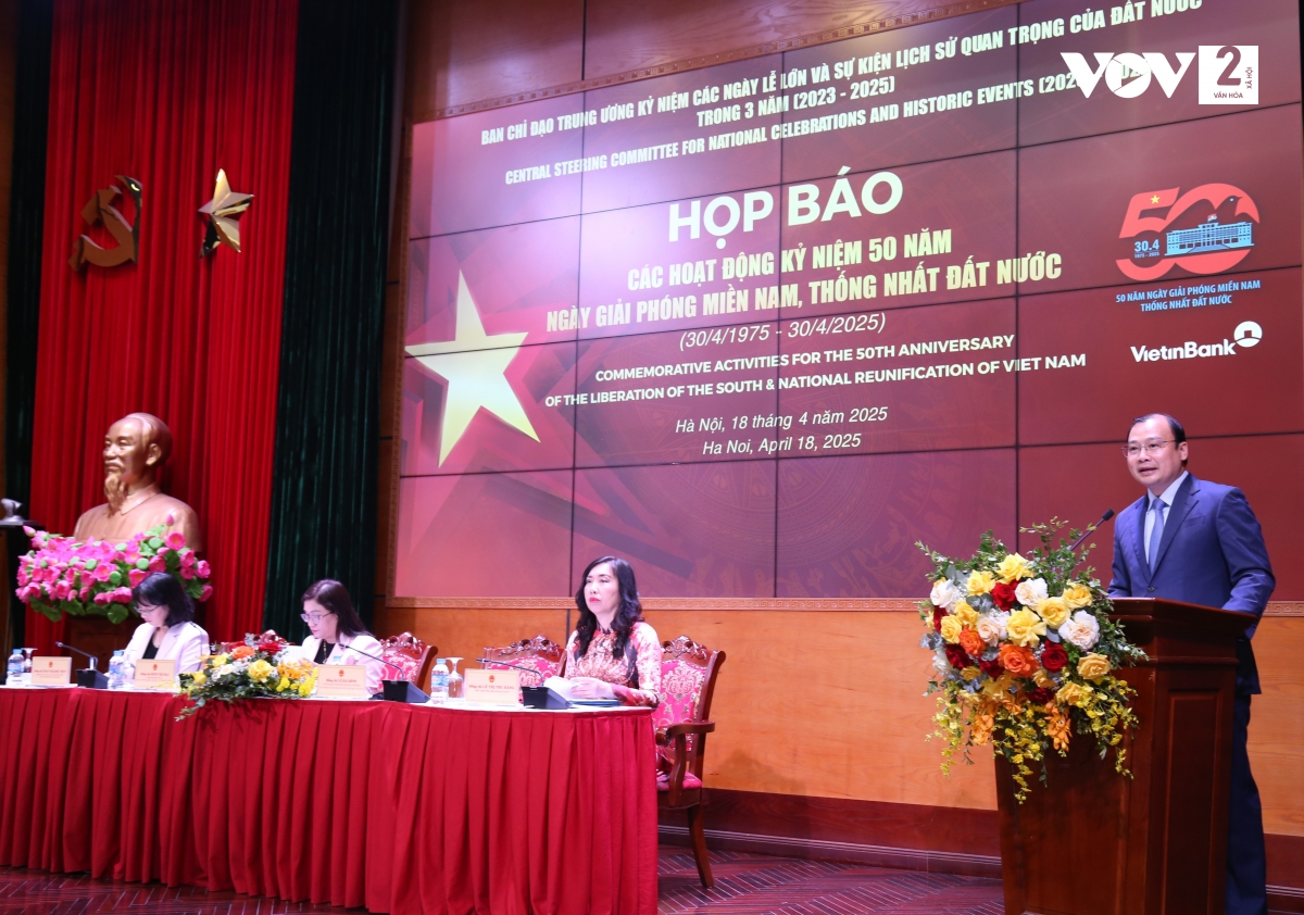 Sáng nay (18/04), tại Hà Nội, Bộ Văn hóa, Thể thao và Du lịch phối hợp với Ban Tuyên giáo và Dân vận Trung ương, Bộ Ngoại giao, UBND Thành phố Hồ Chí Minh tổ chức Họp báo về các hoạt động tuyên truyền Kỷ niệm 50 năm Ngày Giải phóng miền Nam, thống nhất đất nước (30/4/1975 - 30/4/2025).