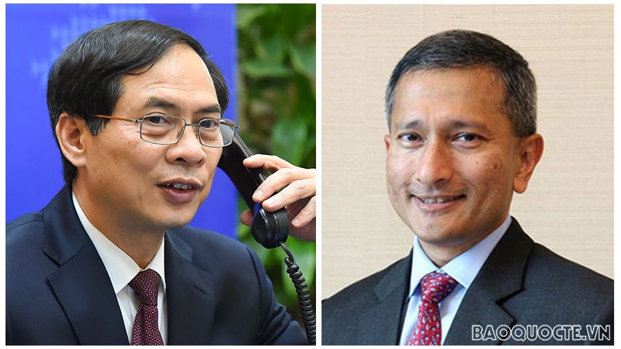 Bộ trưởng Ngoại giao Bùi Thanh Sơn điện đàm với Bộ trưởng Ngoại giao Singapore Vivian Balakrishnan. Ảnh: baoquocte.vn |