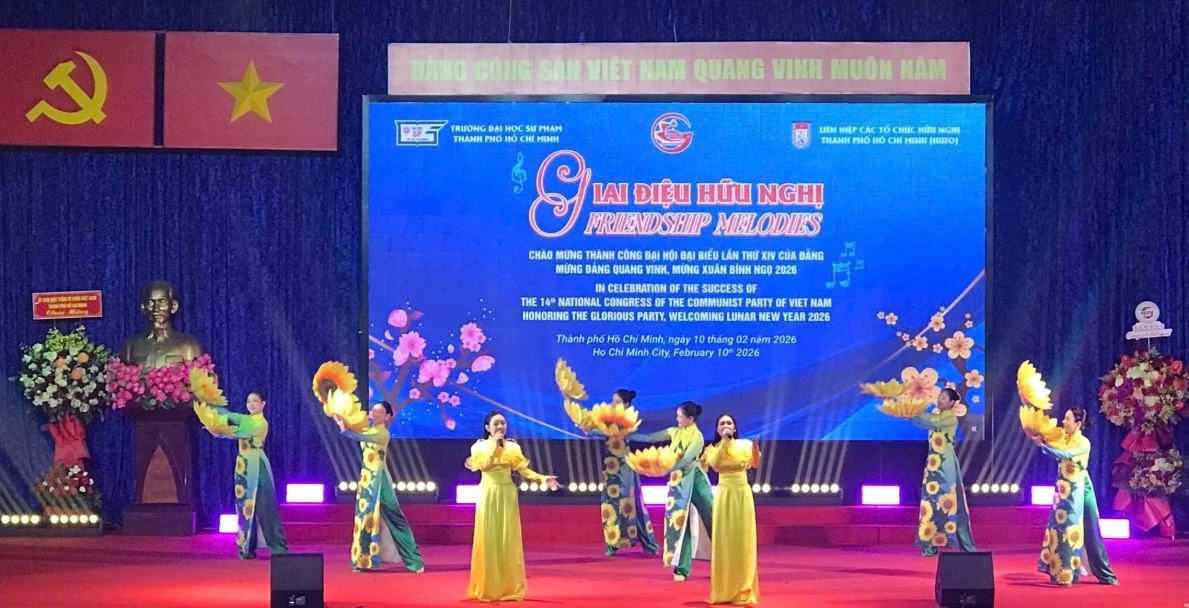 Chương trình nghệ thuật “Giai điệu hữu nghị” diễn ra tối qua (10/2) tại Thành phố Hồ Chí Minh, góp phần lan tỏa tinh thần đoàn kết, hữu nghị quốc tế, chào mừng thành công Đại hội đại biểu toàn quốc lần thứ XIV của Đảng và mừng Xuân Bính Ngọ 2026.