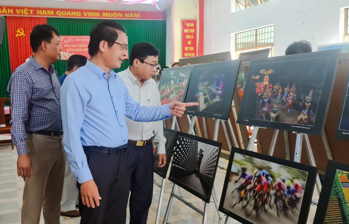 Các đại biểu xem tác phẩm tại triển lãm - Ảnh: travinh.gov.vn |