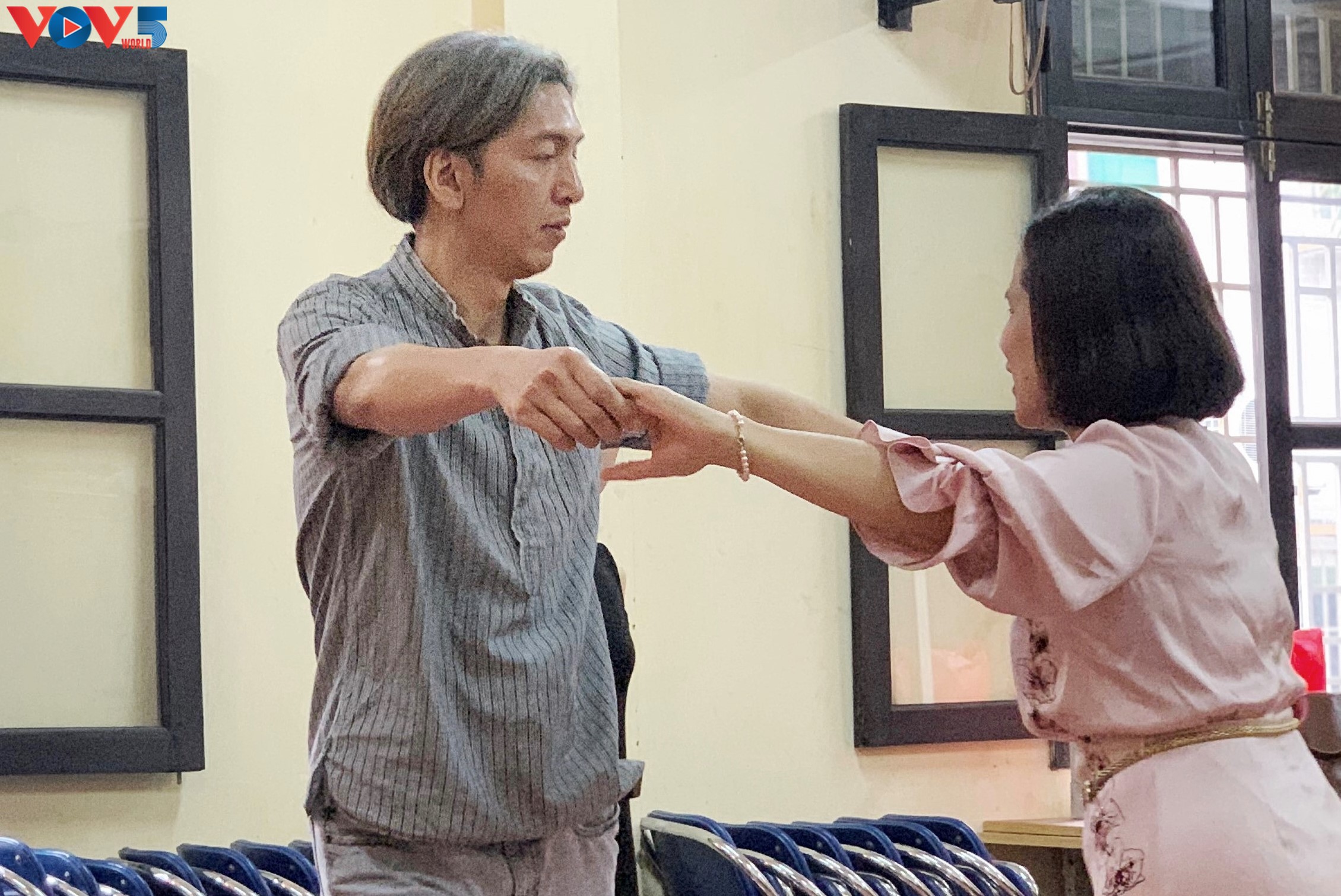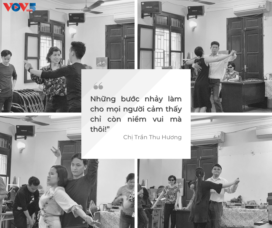 Đây là nơi mà những hội viên của Hội người mù thành phố Hà Nội đang hăng say luyện tập khiêu vũ để chuẩn bị tham gia cuộc thi “Bước nhảy xóa mọi khoảng cách” dành cho người khiếm thị được tổ chức vào ngày 4/4 tới..