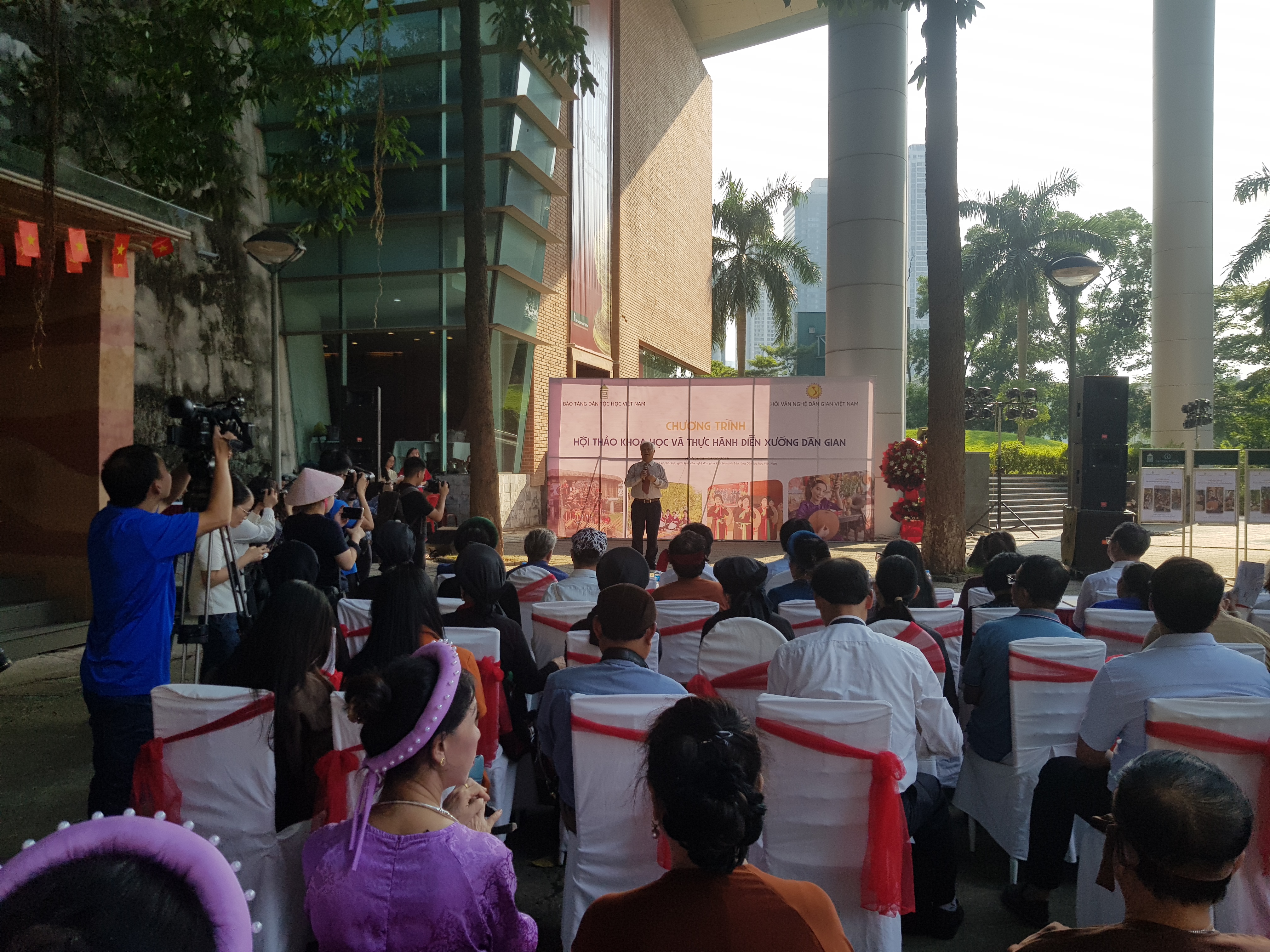 Hội Văn nghệ dân gian Việt Nam phối hợp Bảo tàng Dân tộc học Việt Nam vừa tổ chức hội thảo khoa học “Những báu vật nhân văn sống với việc bảo tồn văn hóa, văn nghệ dân gian các dân tộc Việt Nam” và chương trình diễn xướng dân gian, tại Hà Nội. Sự kiện nhằm tôn vinh và quảng bá 4 loại hình di sản văn hóa phi vật thể tiêu biểu của Việt Nam đã được Tổ chức Khoa học, Giáo dục và Văn hóa Liên hợp quốc (UNESCO) ghi danh gồm: Không gian văn hóa Cồng chiêng Tây Nguyên, Nghệ thuật Đờn ca tài tử Nam Bộ, Dân ca Ví, Giặm Nghệ Tĩnh và Dân ca Quan họ Bắc Ninh.