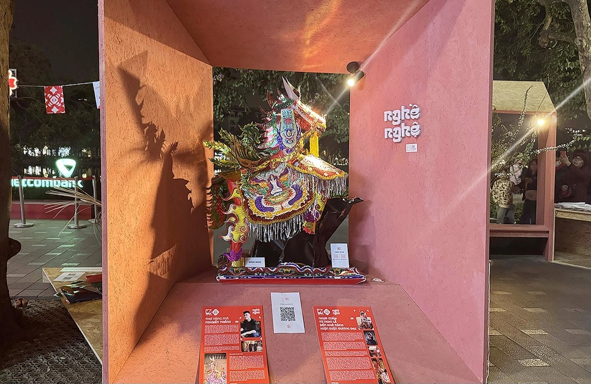 Các gian trưng bày sản phẩm truyền thống luôn thu hút sự quan tâm của nhiều du khách. Ảnh: VOV |