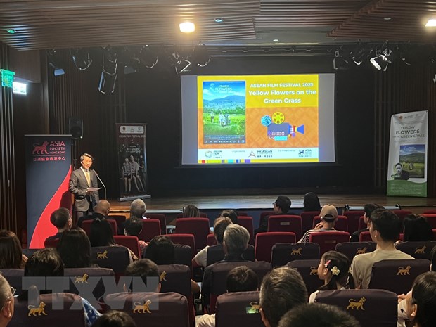 Ông Phạm Bình Đàm, Tổng lãnh sự Việt Nam tại Hong Kong, phát biểu tại buổi công chiếu bộ phim " Tôi thấy hoa vàng trên cỏ xanh"- Ảnh: Mạc Luyện/TTXVN |