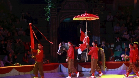 Nghệ thuật xiếc tái hiện những câu chuyện của dòng tranh Đông Hồ
