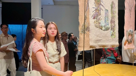 (VOV5) - Triển lãm giới thiệu 80 tác phẩm mỹ thuật tiêu biểu, sáng tác trong giai đoạn 1947 - 1986, thuộc nhiều chất liệu: sơn dầu, sơn mài, lụa, giấy, gỗ, thạch cao…