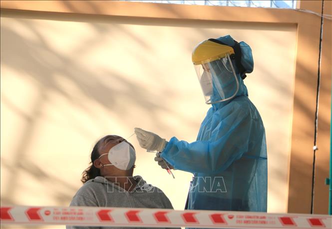 Lấy mẫu xét nghiệm SARS-CoV-2 cho người dân. Ảnh tư liệu: TTXVN |