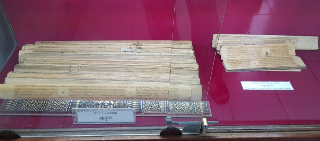 Kinh lá buông lưu giữ ở nhà trưng bày chuyên đề văn hóa dân tộc Khmer.Ảnh Ngọc Anh |