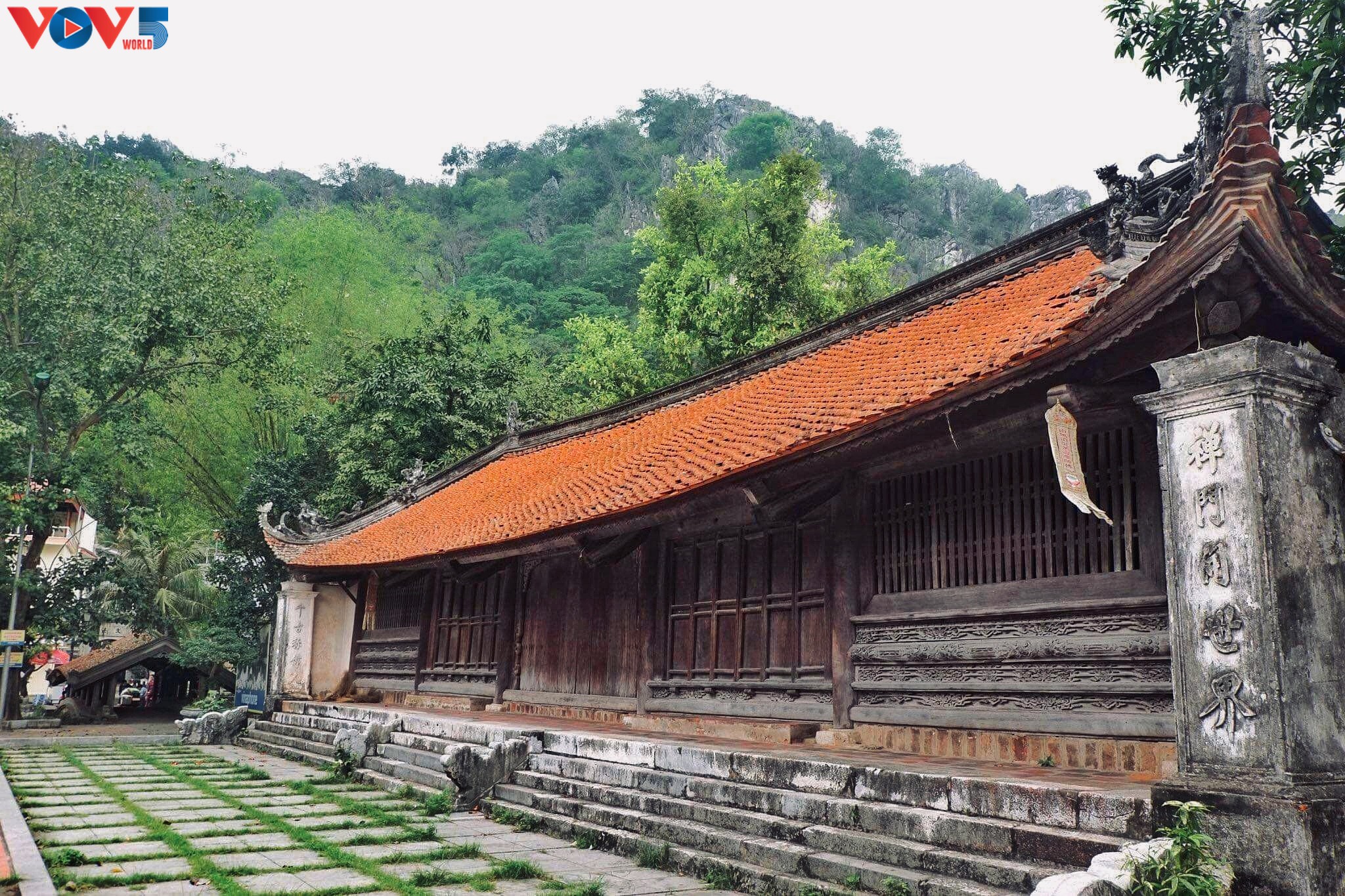 Cây hoa gạo với sắc đỏ đặc trưng không chỉ tô điểm cho cảnh sắc chùa Thầy mà còn như minh chứng cho nét cổ kính và văn hóa ngàn đời của mảnh đất nhà Phật.