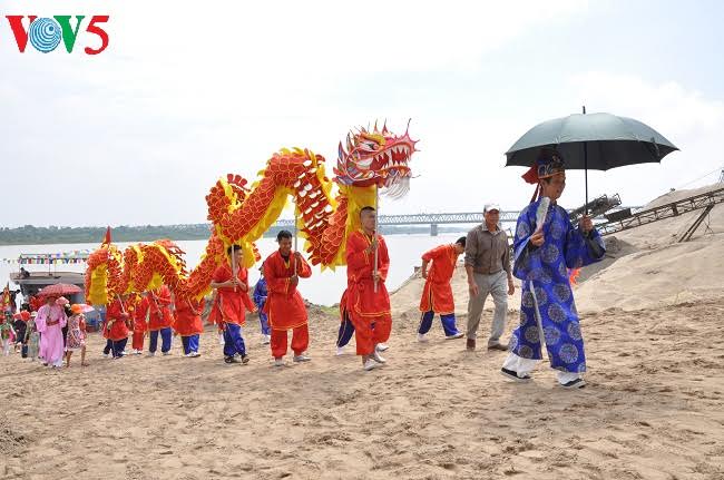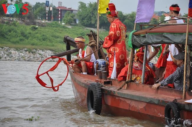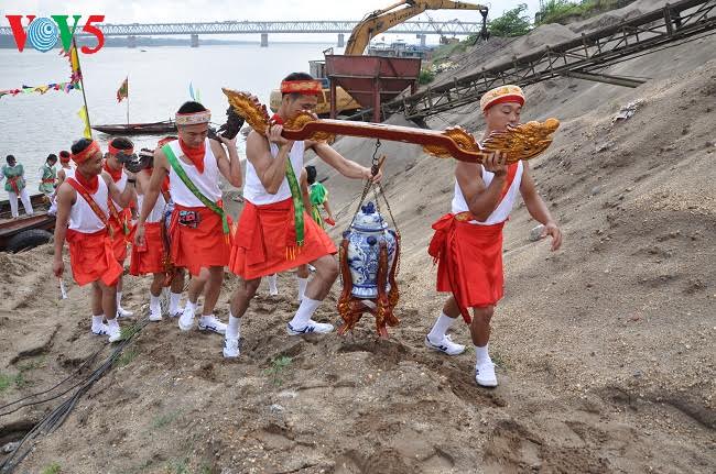 Nước tế thần được lấy từ giữa dòng chảy sông Hồng, diễu qua ba làng ven sông, rồi quay về đình làm lễ tế. Đây cũng là điểm khá hiếm thấy so với nhiều lễ hội khác.